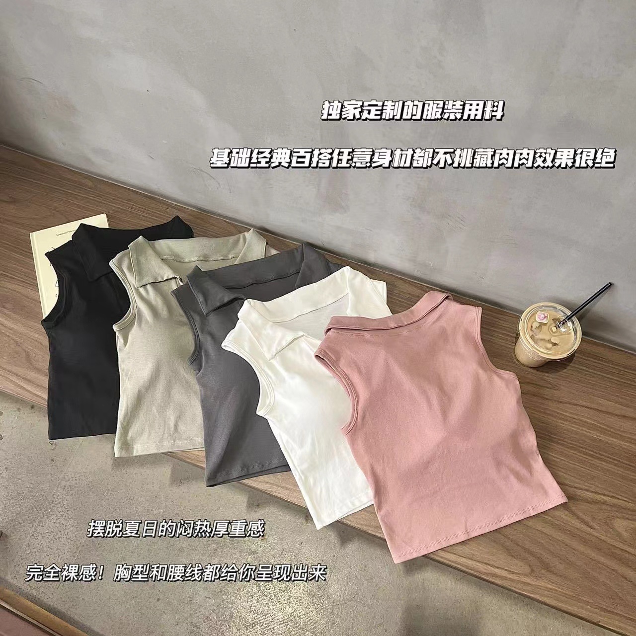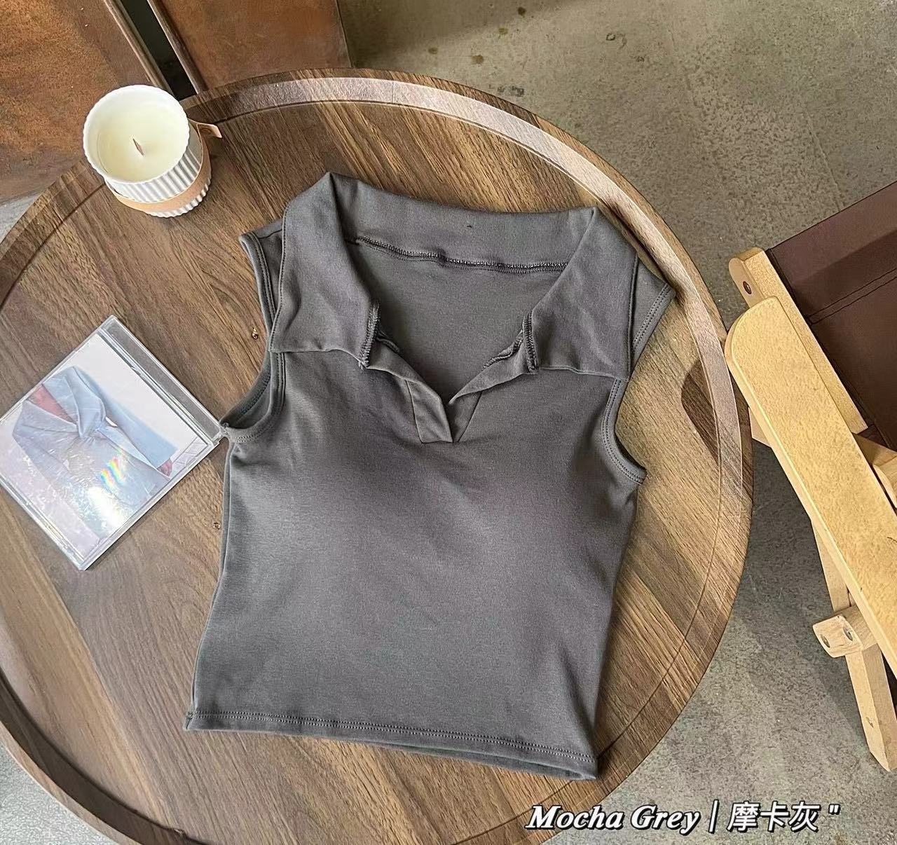 미국식 폴로 칼라 카미 솔 여성용 스파이스 걸의 내부 벨트 가슴 패드 틈새 섹시한 외부 소매 쇼트 탑스토어 가기