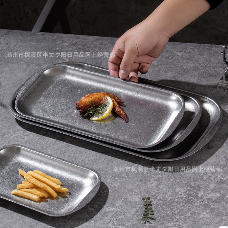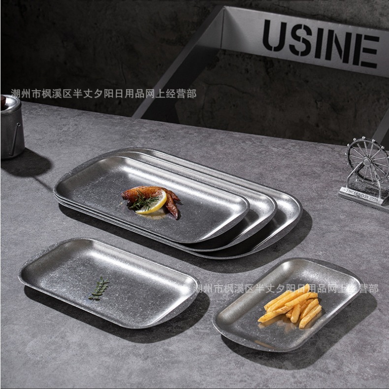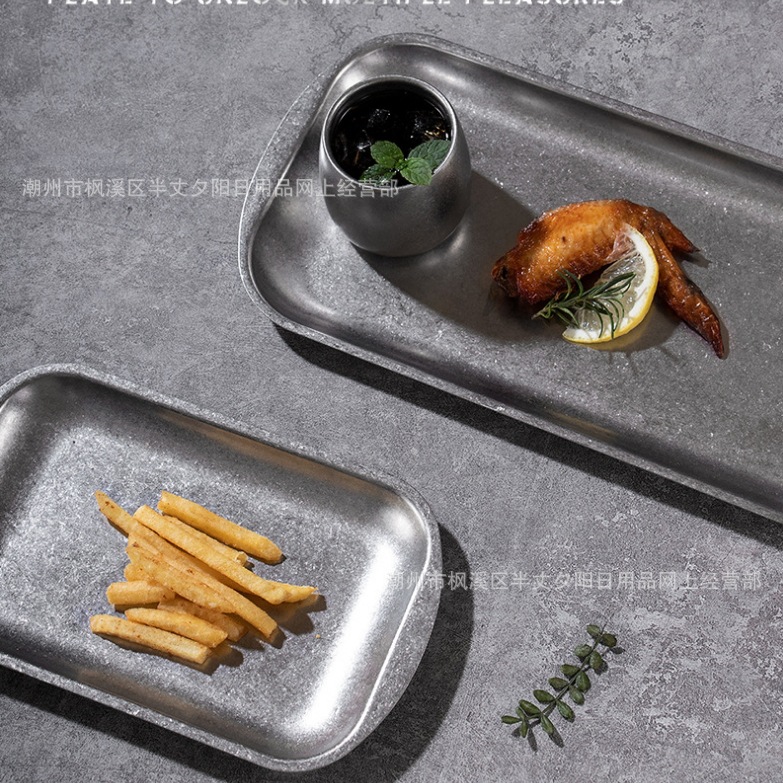 인터넷 연예인 빈티지 디너 플레이트 손으로 만든 커피 바이나럴 트레이 선술집 티 트레이 커피 디저트 트레이 304 스테인레스 스틸 트레이