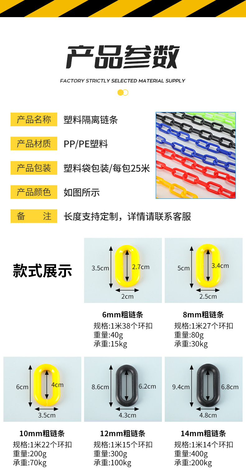 • 6MM 두꺼운 빨간색 노란색 단단한 PP/PE 플라스틱 체인