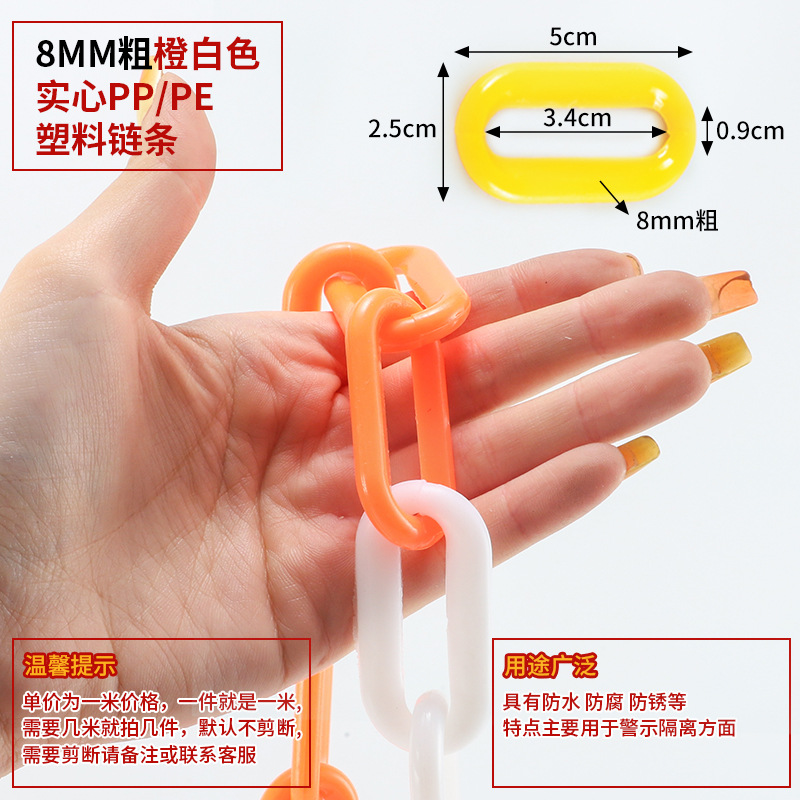 • 8MM 두꺼운 오렌지 흰색 단단한 PP/PE 플라스틱 체인