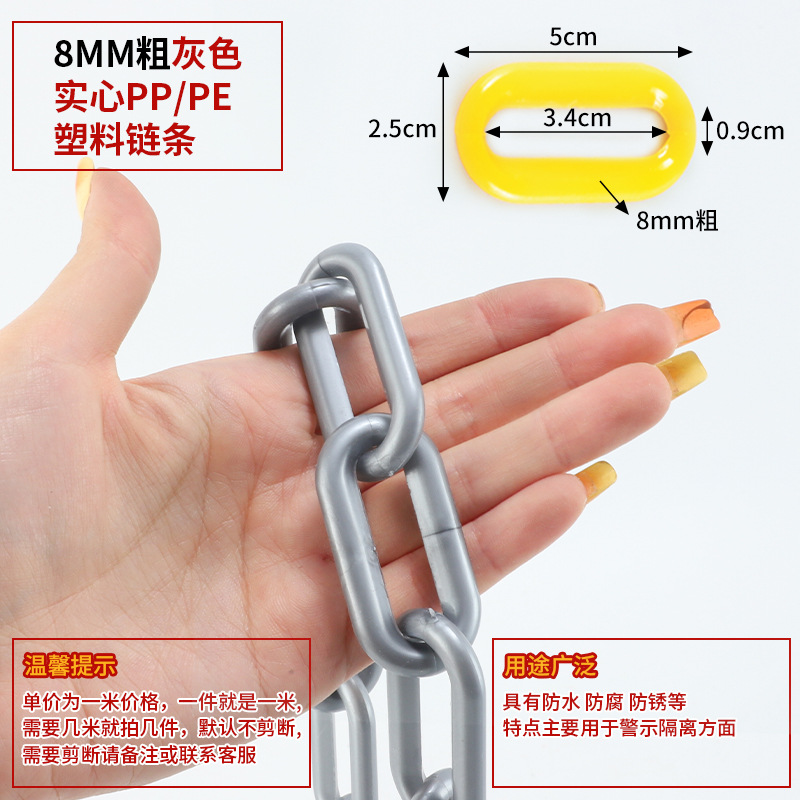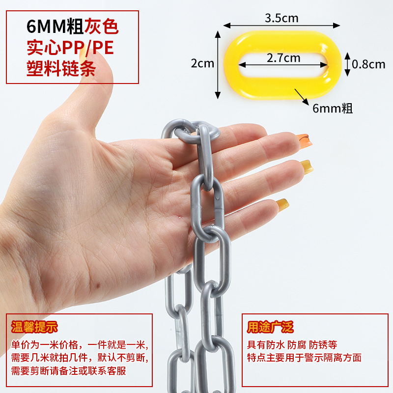 • 6MM 두꺼운 실버 회색 단단한 PP/PE 플라스틱 체인