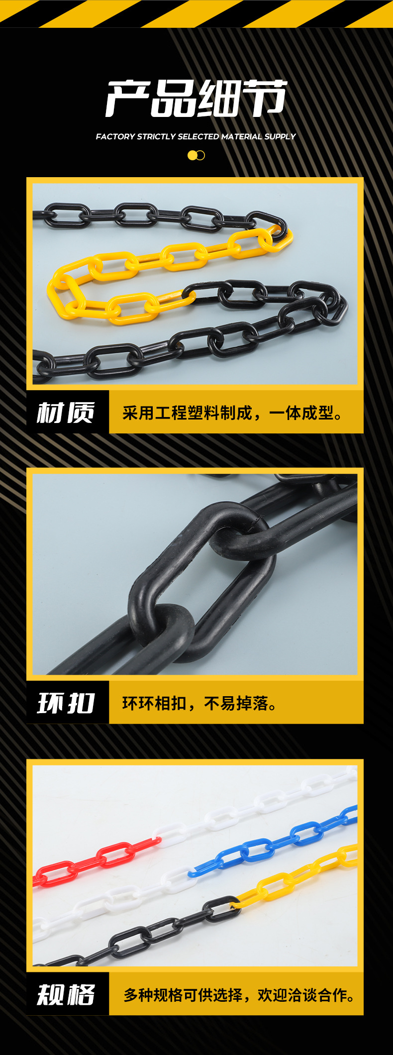 • 6MM 두꺼운 노란색 검은 색 단단한 PP/PE 플라스틱 체인