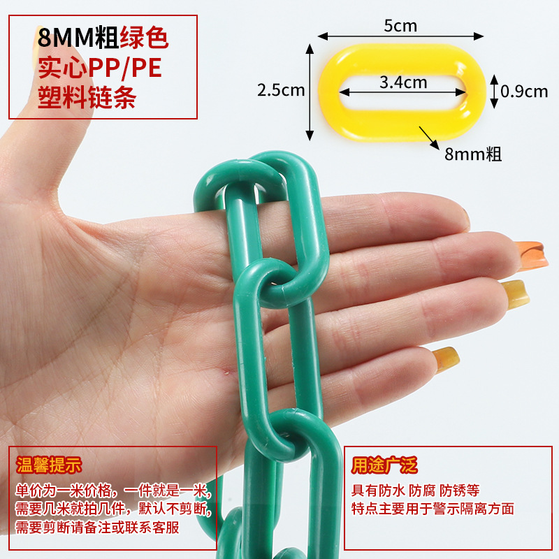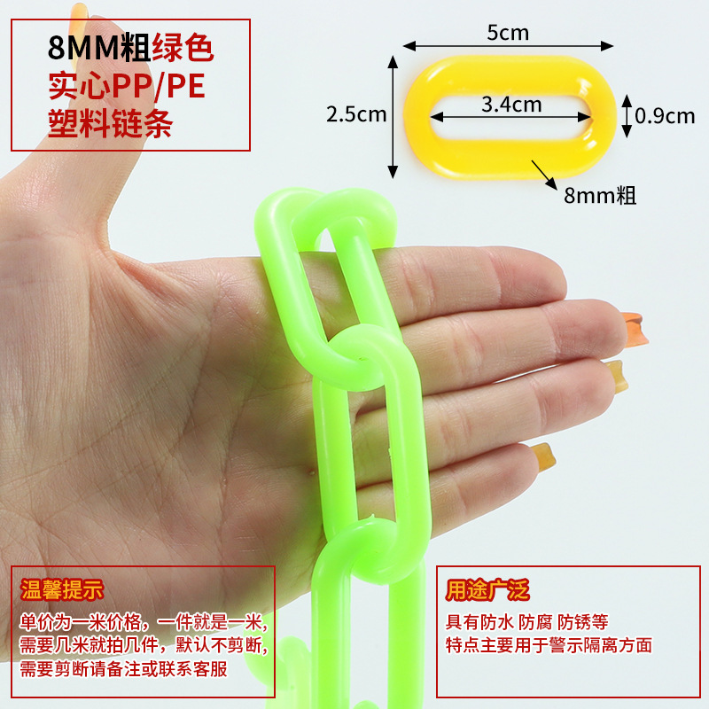 • 8MM 두꺼운 형광 녹색 고체 PP/PE 플라스틱 체인