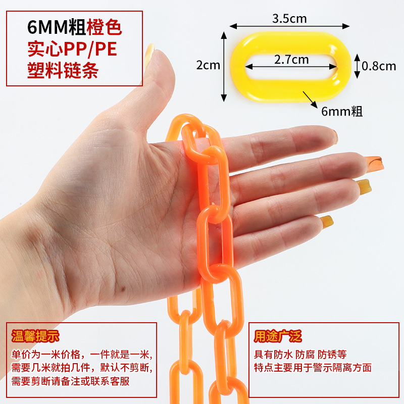 • 6MM 두꺼운 오렌지 고체 PP/PE 플라스틱 체인
