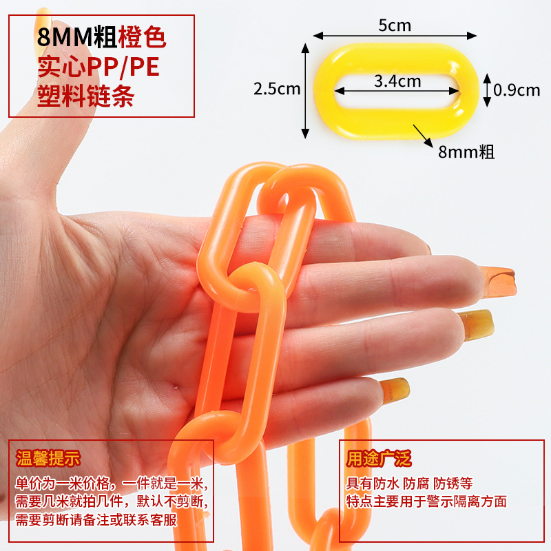 • 8MM 두꺼운 오렌지 고체 PP/PE 플라스틱 체인
