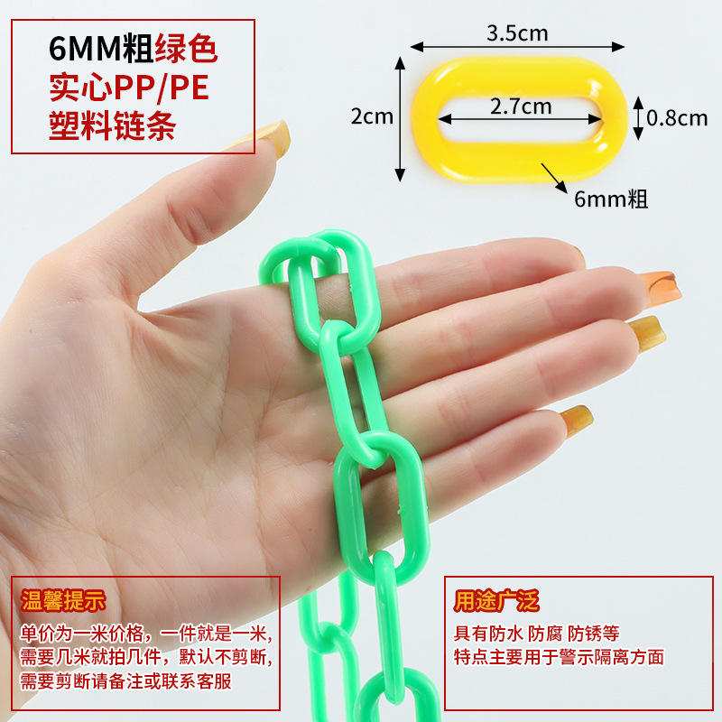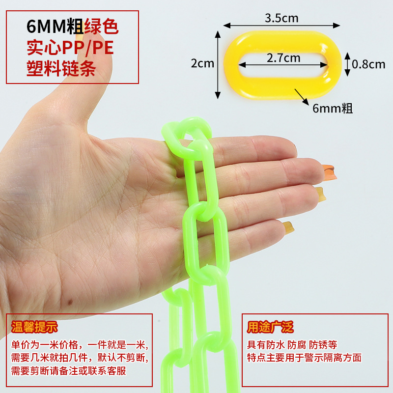 • 6MM 두꺼운 형광 녹색 고체 PP/PE 플라스틱 체인