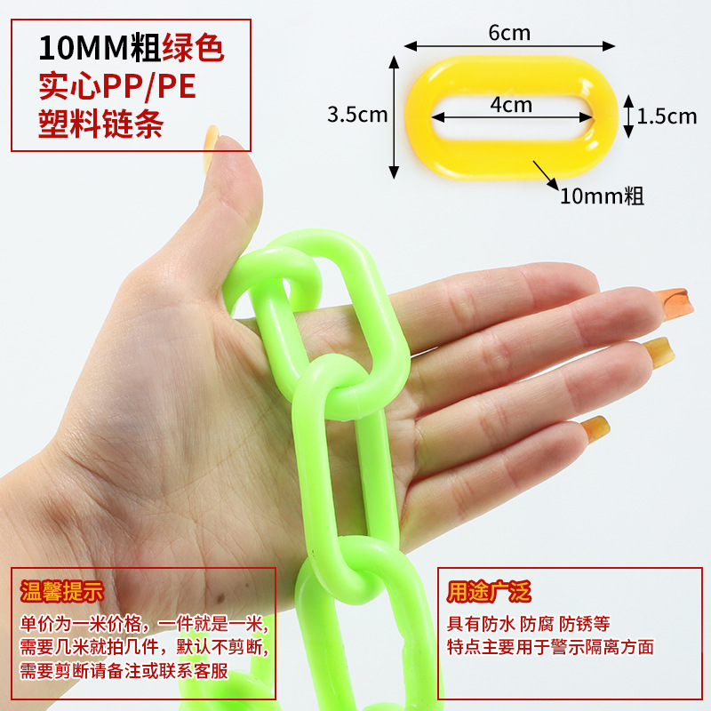 • 10MM 두꺼운 형광 녹색 고체 PP/PE 플라스틱 체인