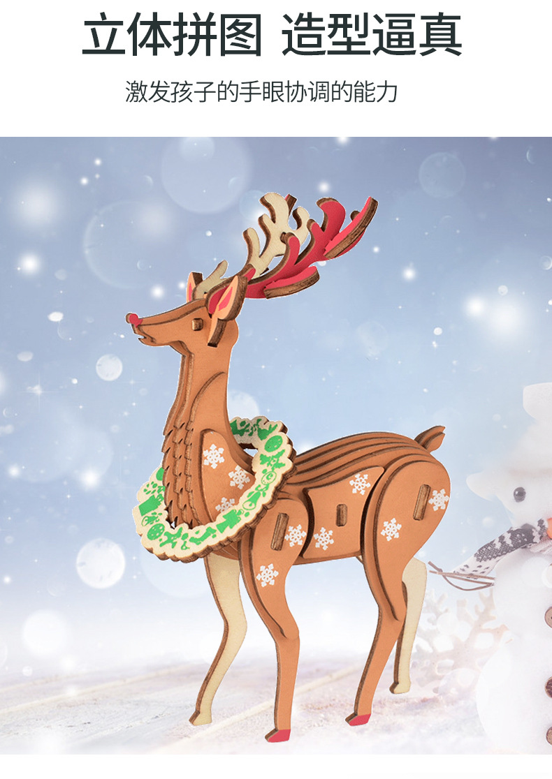 눈 순록 나무 퍼즐 3d 모델 장난감 소년과 소녀 6 세 이상 수제 선물 스톨 도매스토어 가기