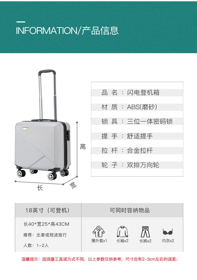 18 인치 탑승 상자 작은 여행 가방 남성과 여성의 트롤리 케이스 학생 작은 암호 상자 유니버설 휠 여행 상자 조명