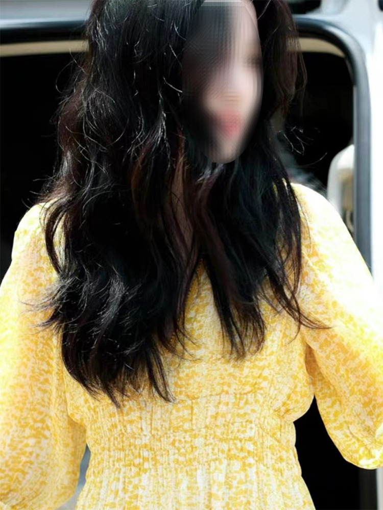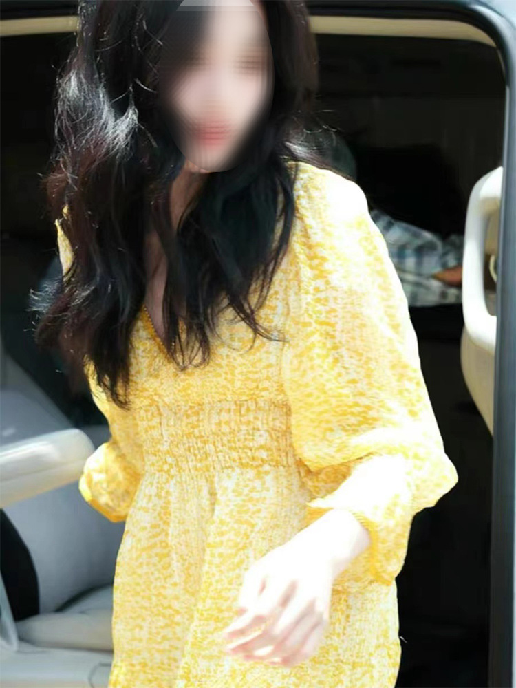 Lu Yuxiao 같은 스타일 의류 노란색 꽃 원피스 서양식 우아한 빛 성숙한 스타일 프랑스 스타일 올 매치 롱 원피스