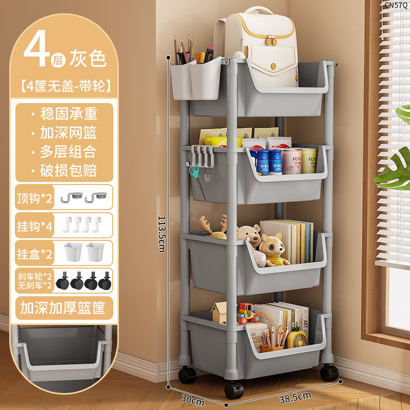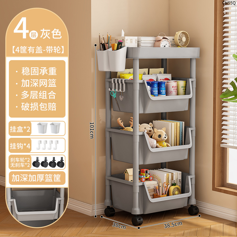 • CN57Q-38C 4 층 책 선반-커버 그레이 교수형 상자가없는 4 개의 바구니