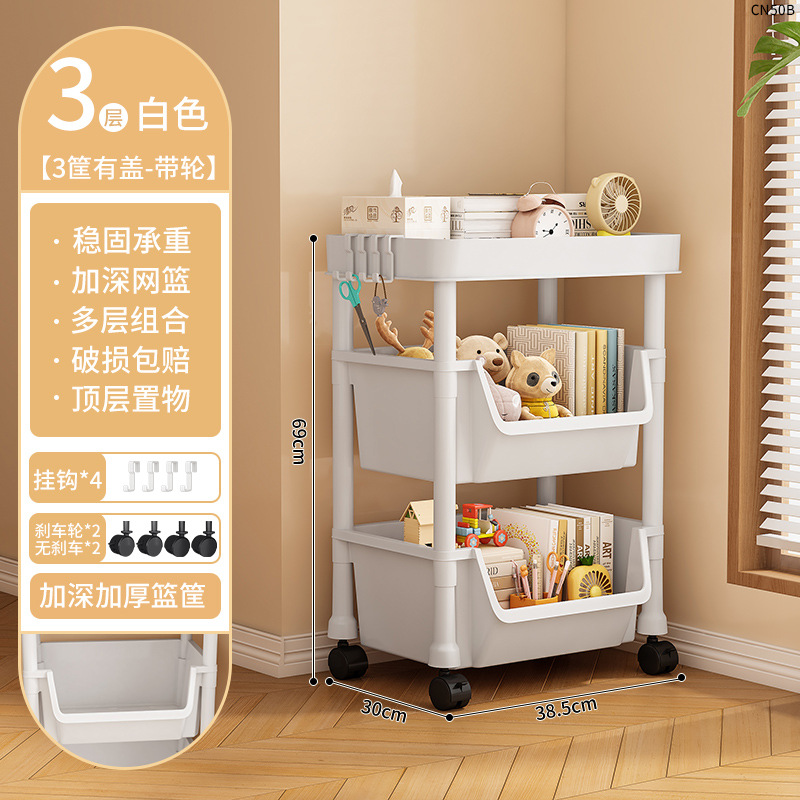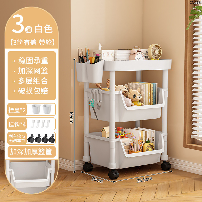 • CN50B-38C 3 층 책 랙-2 바구니 1 커버 화이트