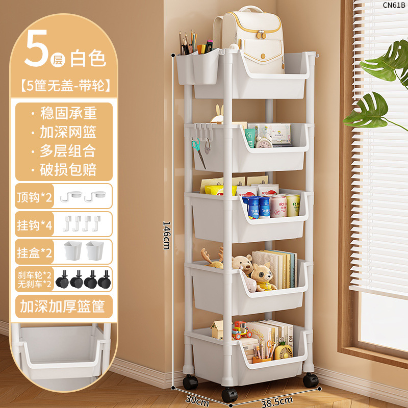 • CN59B-38C 5 층짜리 책 랙-4 바구니 1 커버 화이트 교수형 상자