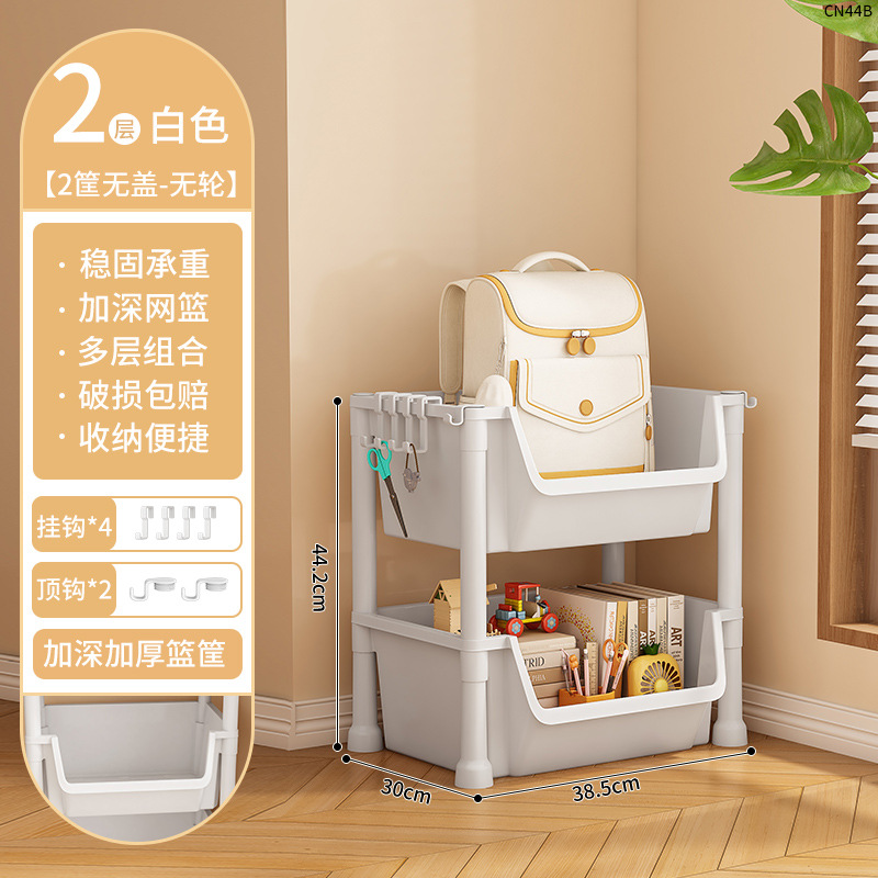 • CN48B-38C 2 층 책 선반-뚜껑이없는 바구니 2 개-흰색