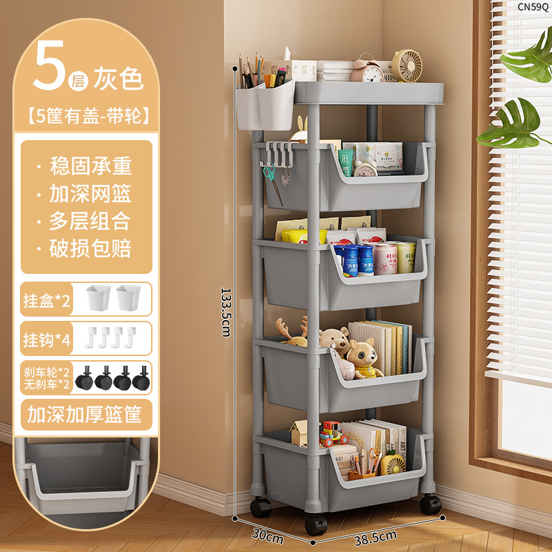• CN59Q-38C 5 층짜리 책 랙-4 바구니 1 커버 회색 교수형 상자