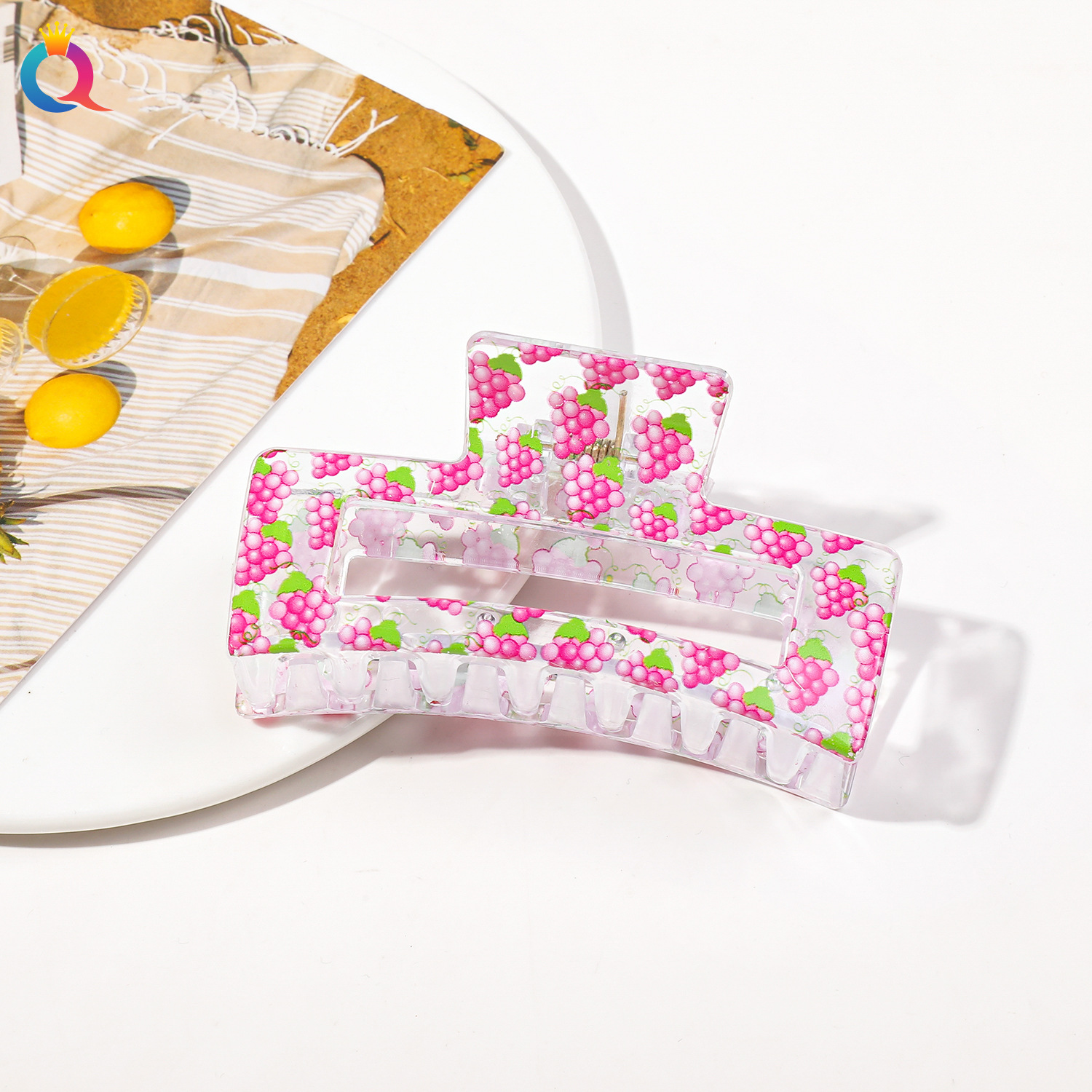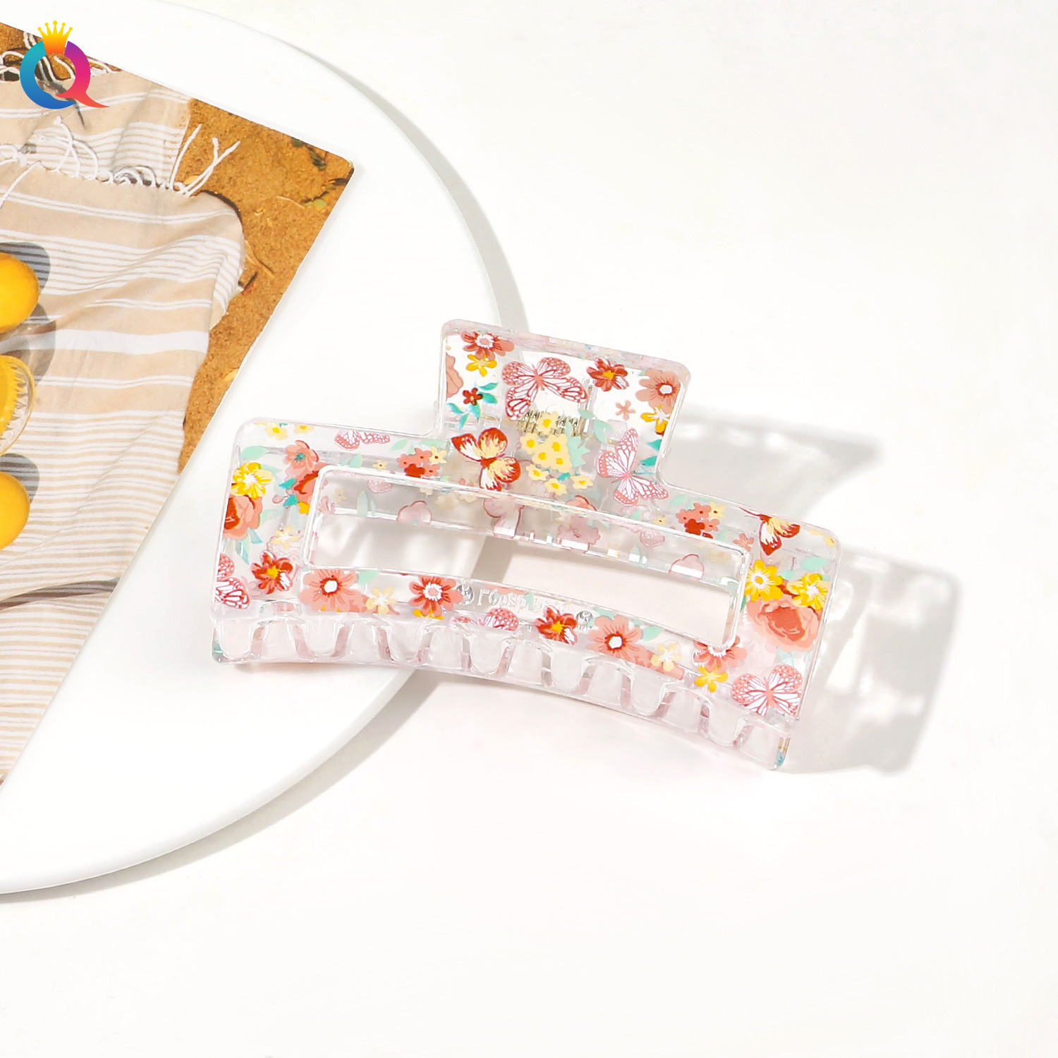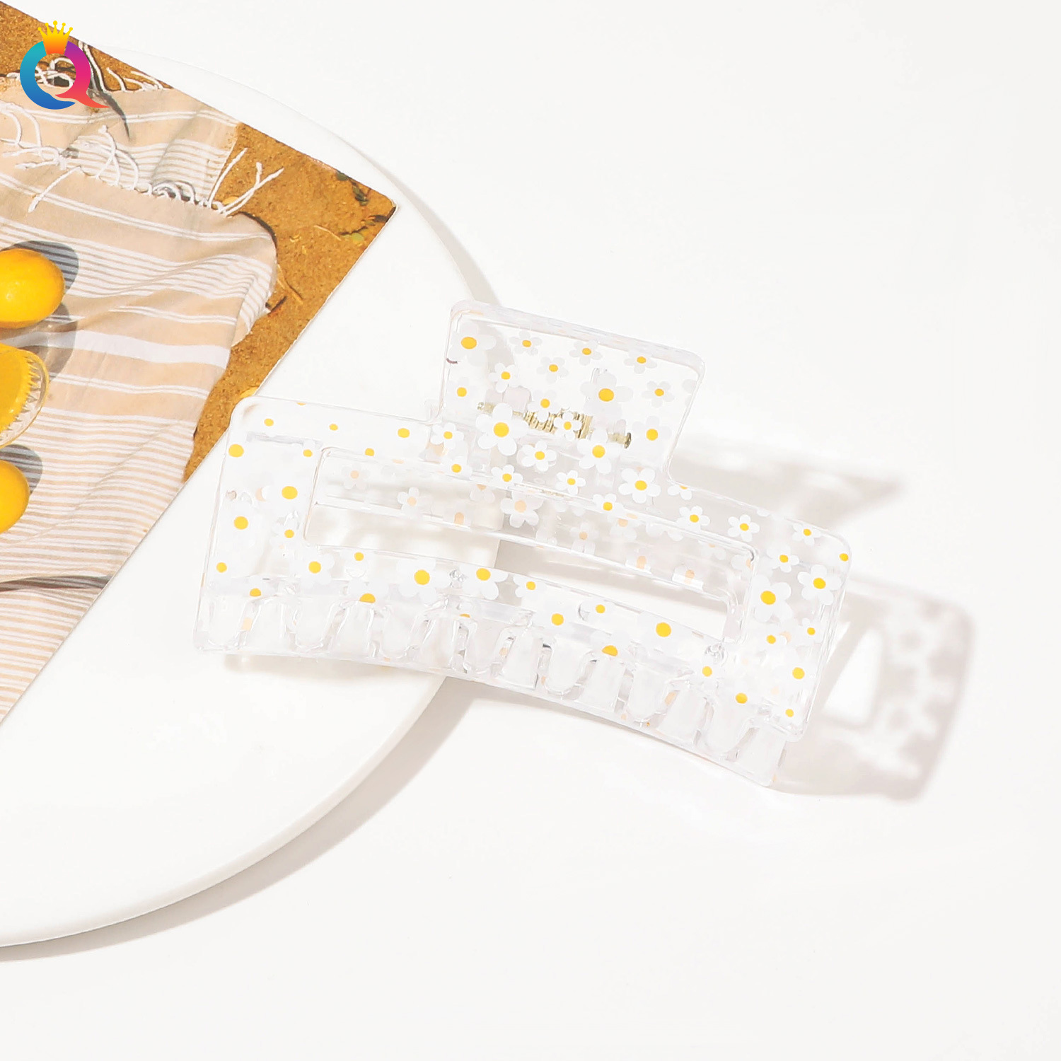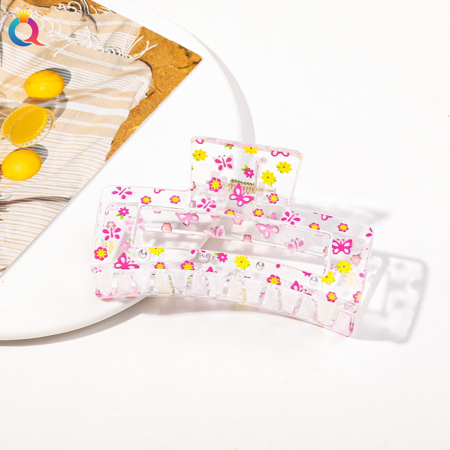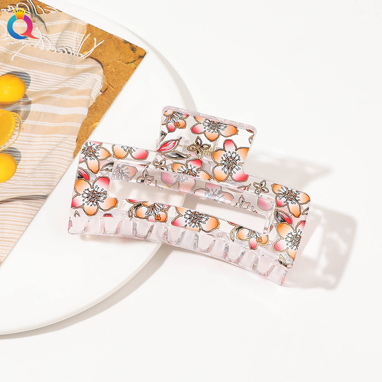 Qiyue 국경 인쇄 헤어핀 깨진 꽃 디스크 머리 잡아 클립 귀여운 상어 클립 헤어 액세서리 여름 하이 엔드 센스 헤어 그랩 도매