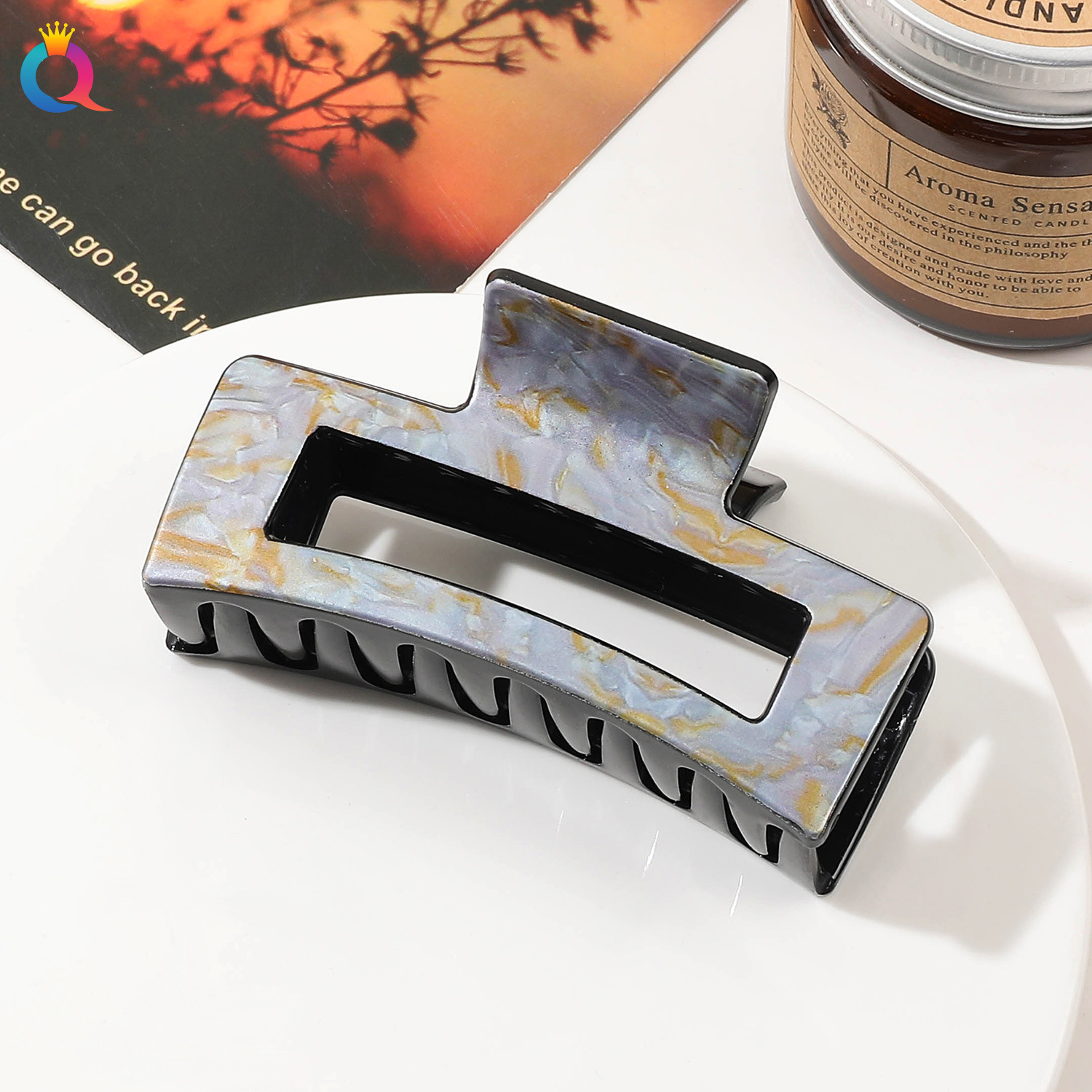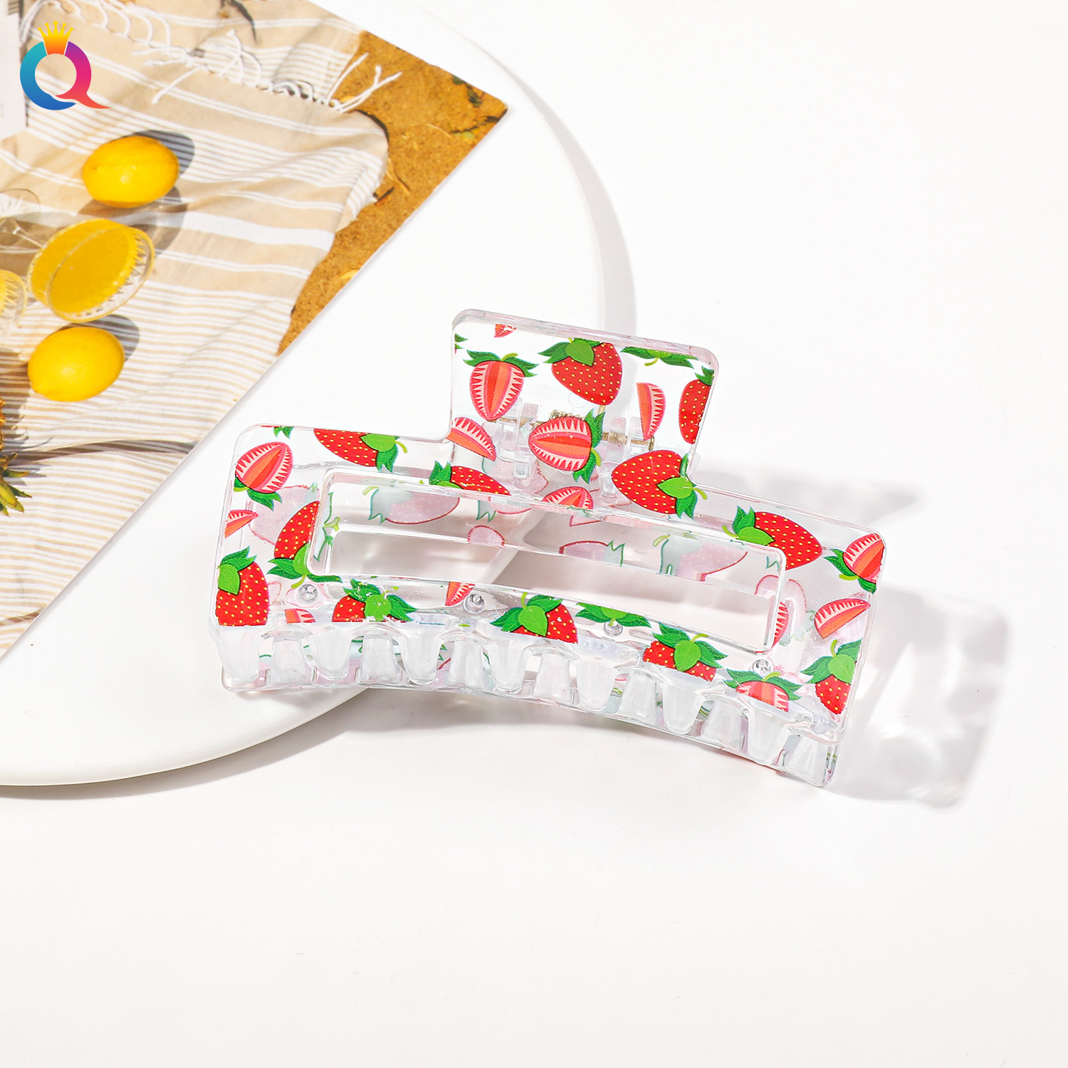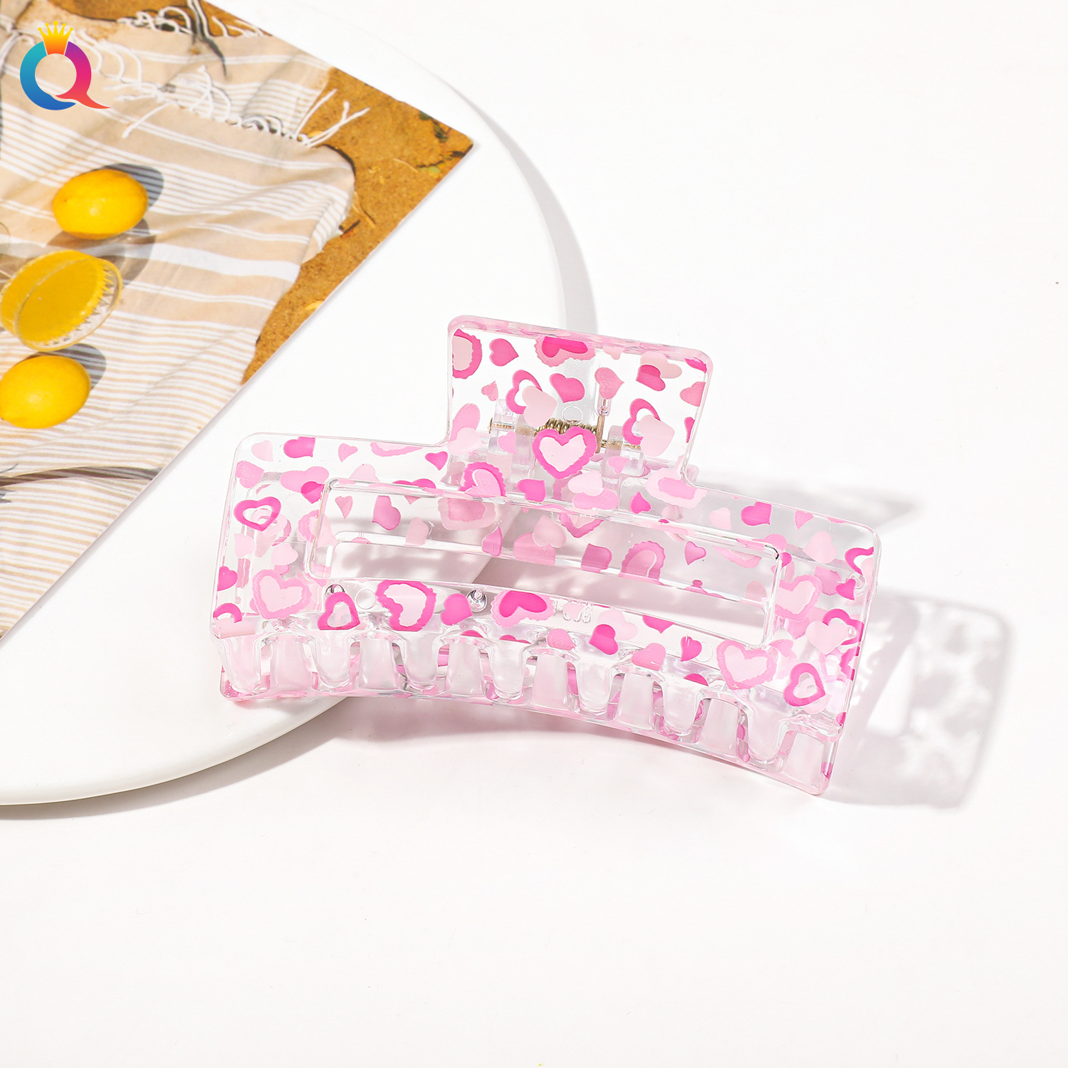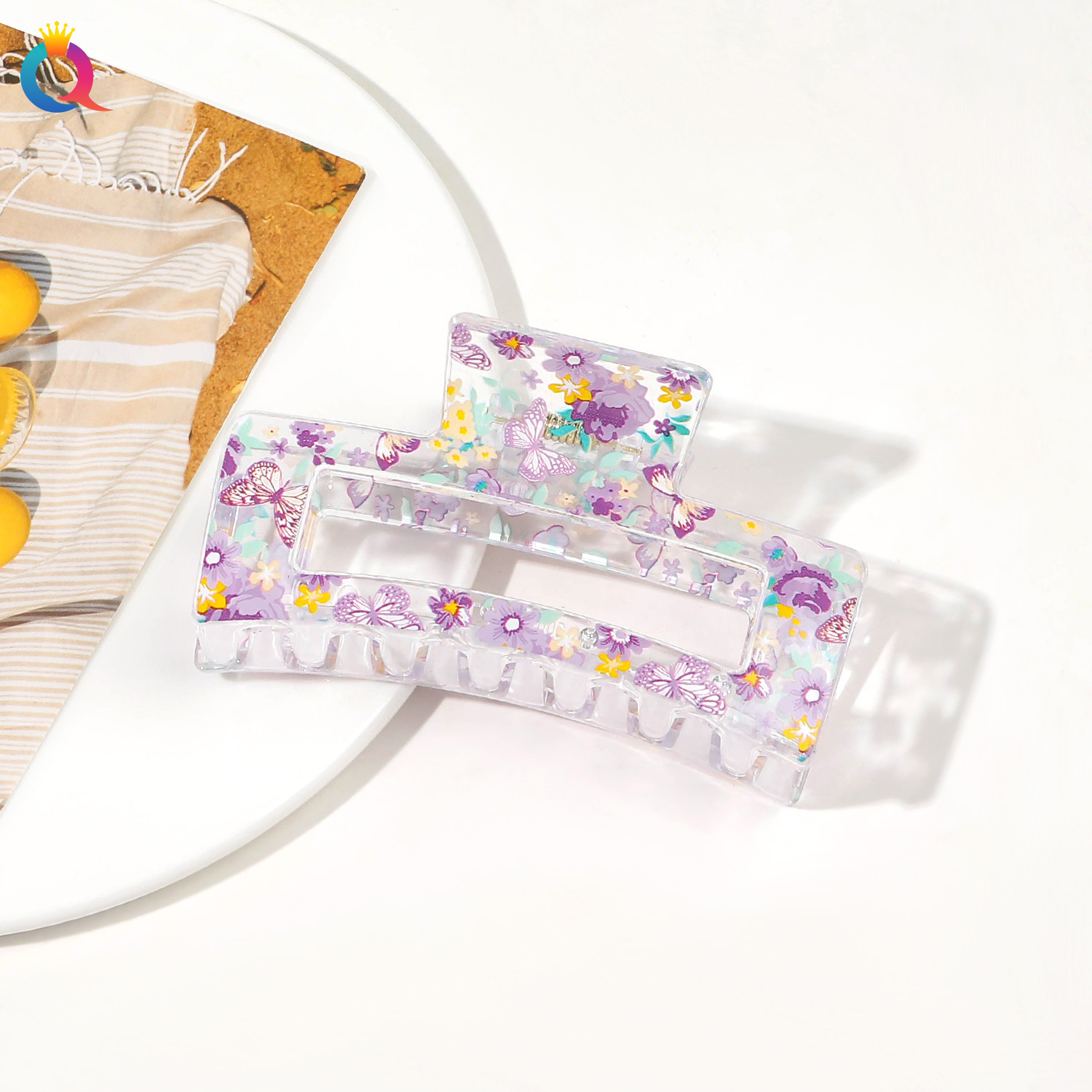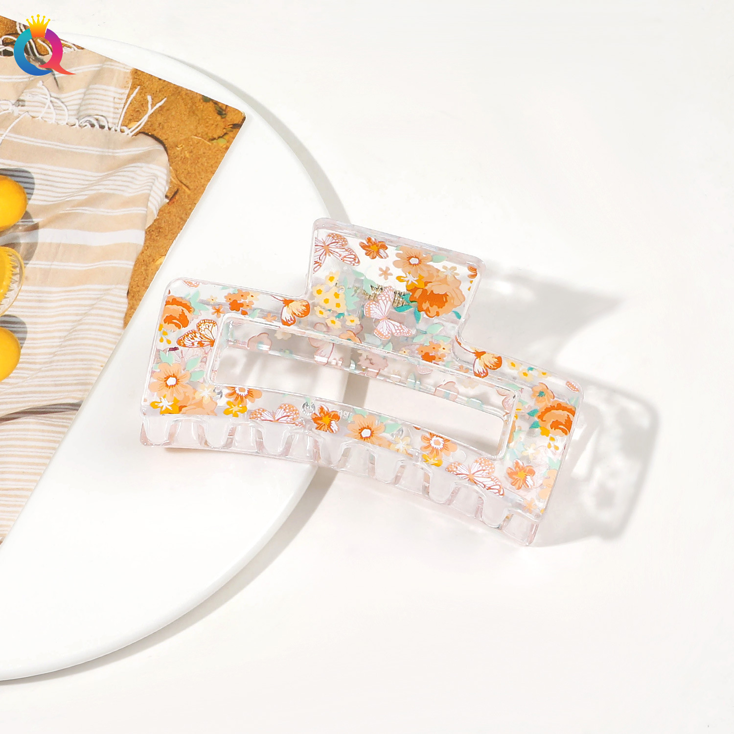 Qiyue 국경 인쇄 헤어핀 깨진 꽃 디스크 머리 잡아 클립 귀여운 상어 클립 헤어 액세서리 여름 하이 엔드 센스 헤어 그랩 도매