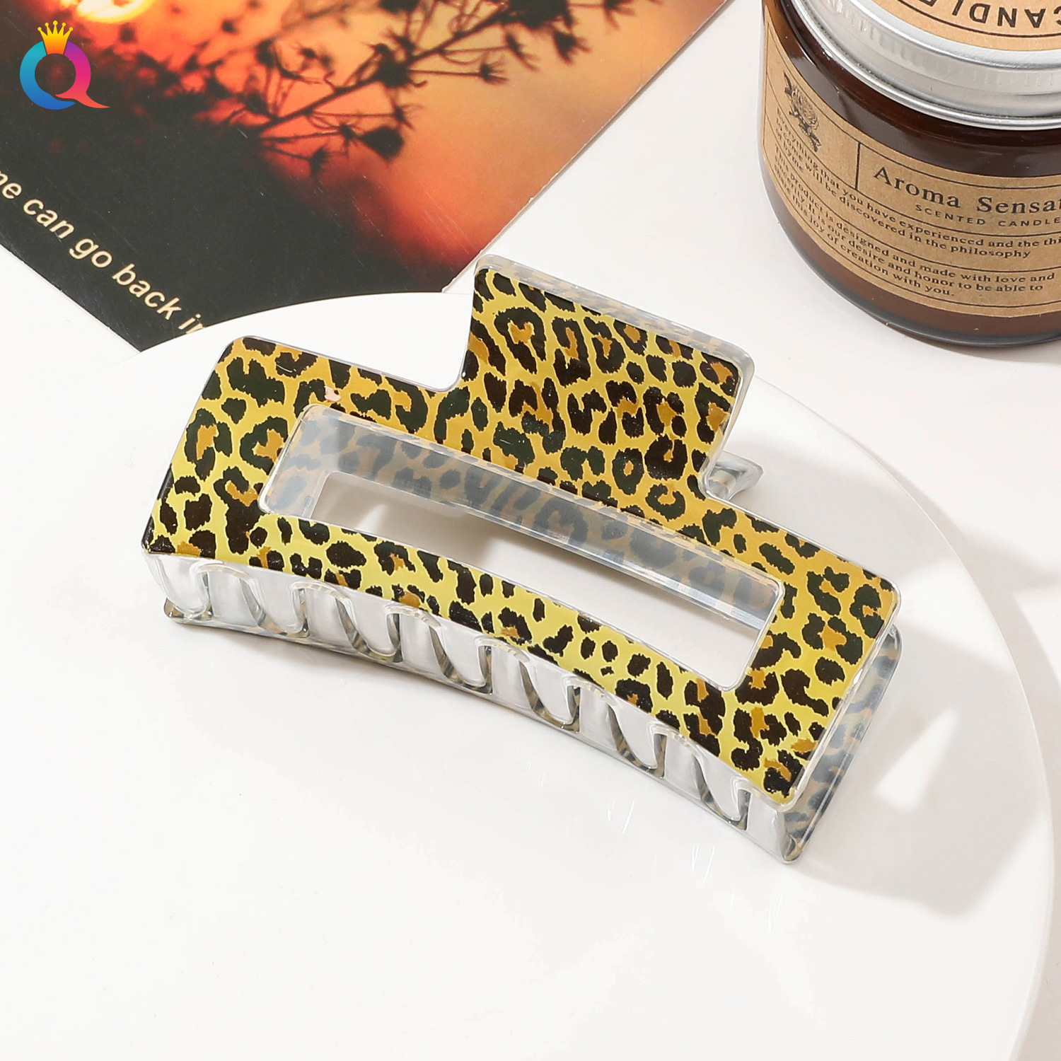 • 8.5cm 사각형 노란색 표범 검정