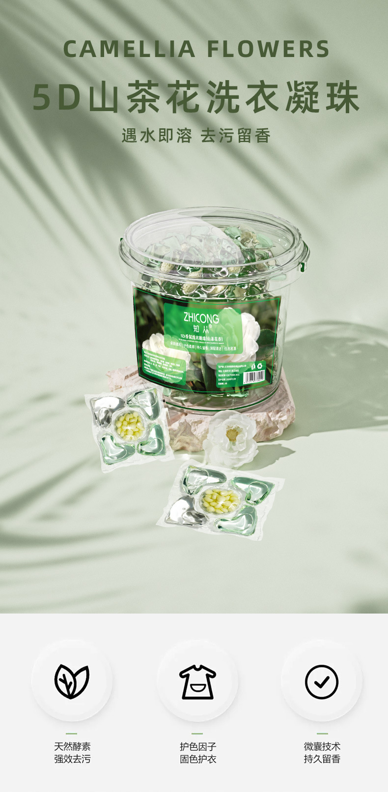 5 대 1 동백 세탁 구슬 지속 향기로운 구슬 강한 오염 제거 향수 세탁 세제 세탁 공 도매스토어 가기
