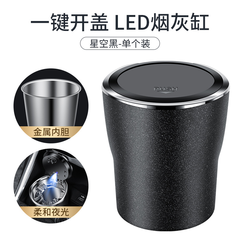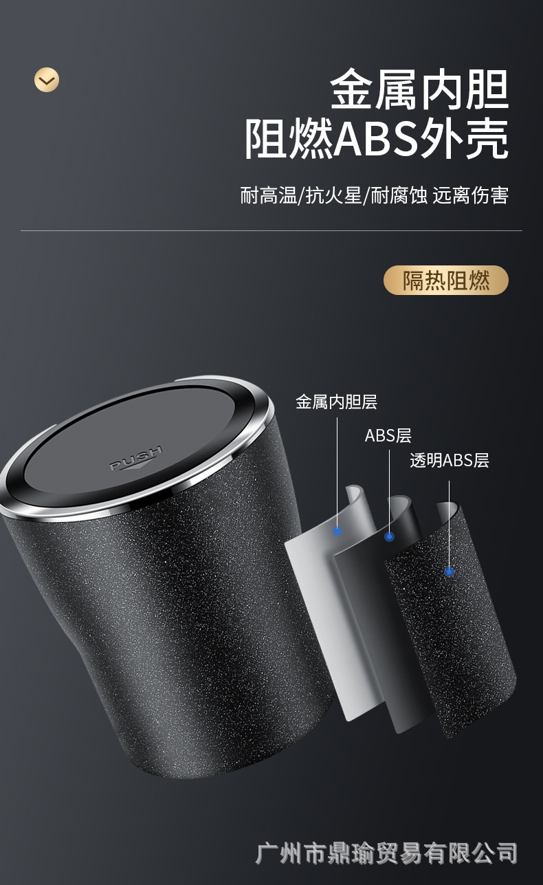 자동차 재떨이 창조적 인 LED 빛 원 키 오픈 커버 다기능 스테인레스 스틸 라이너 재떨이 자동차 재떨이