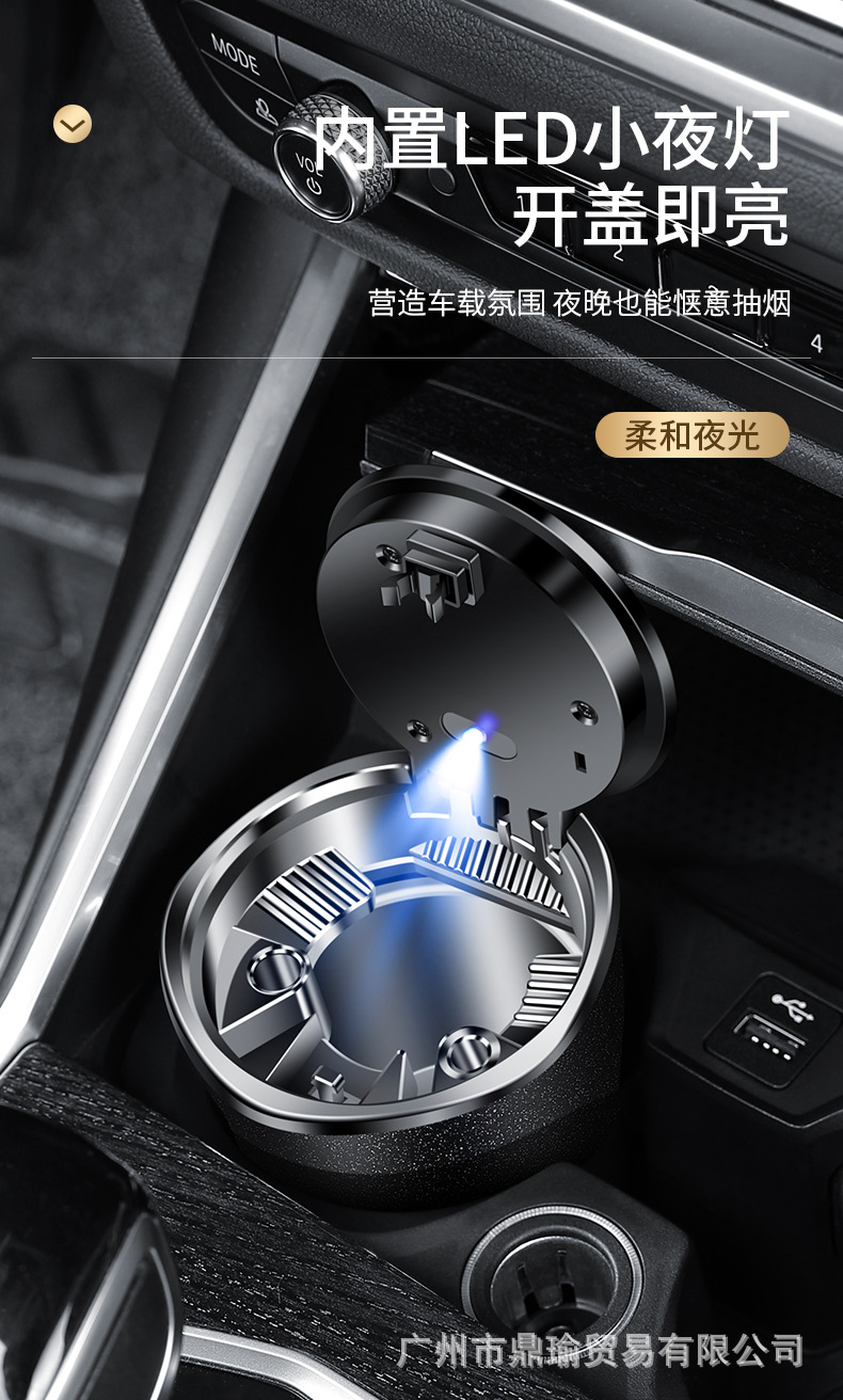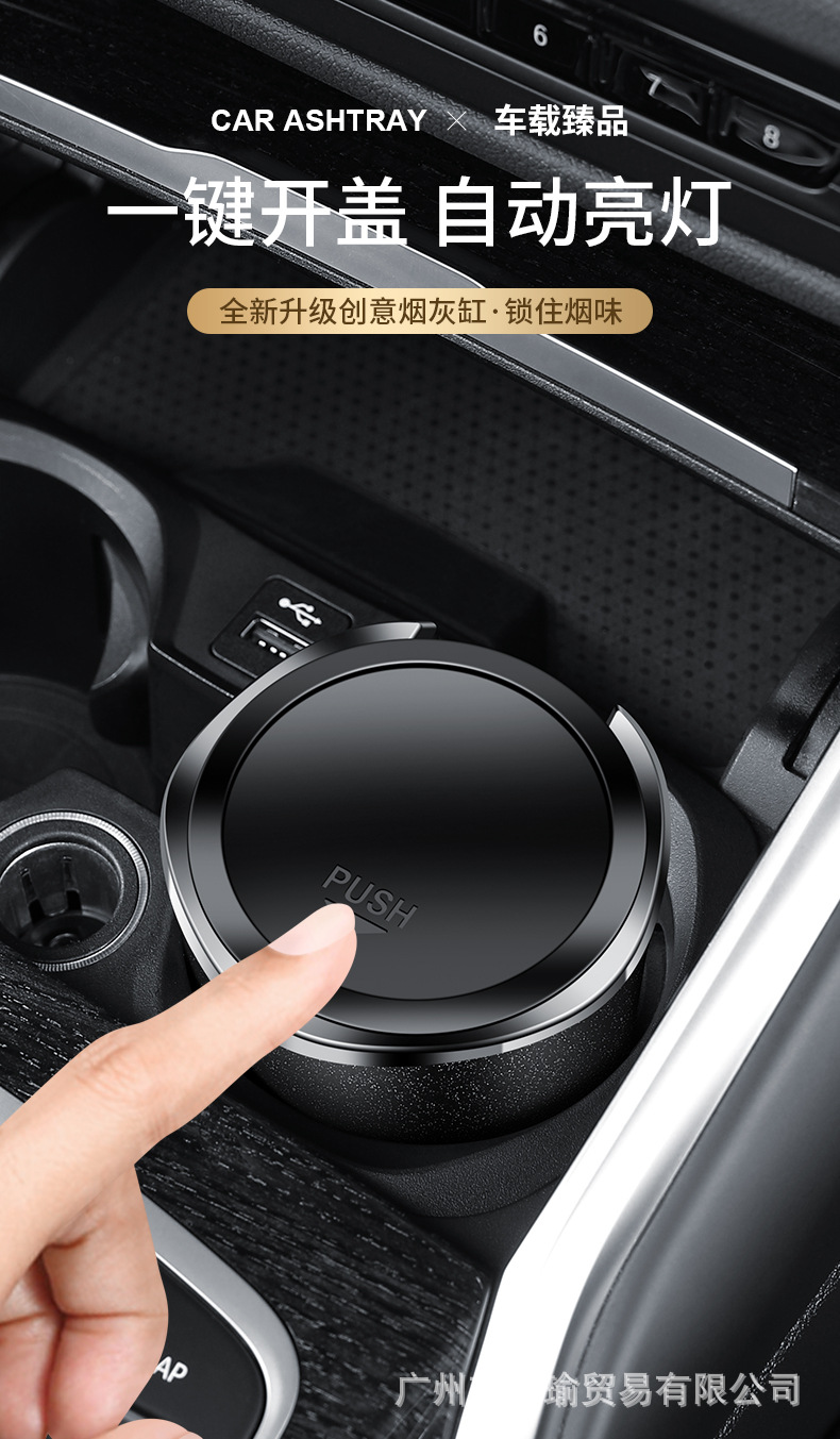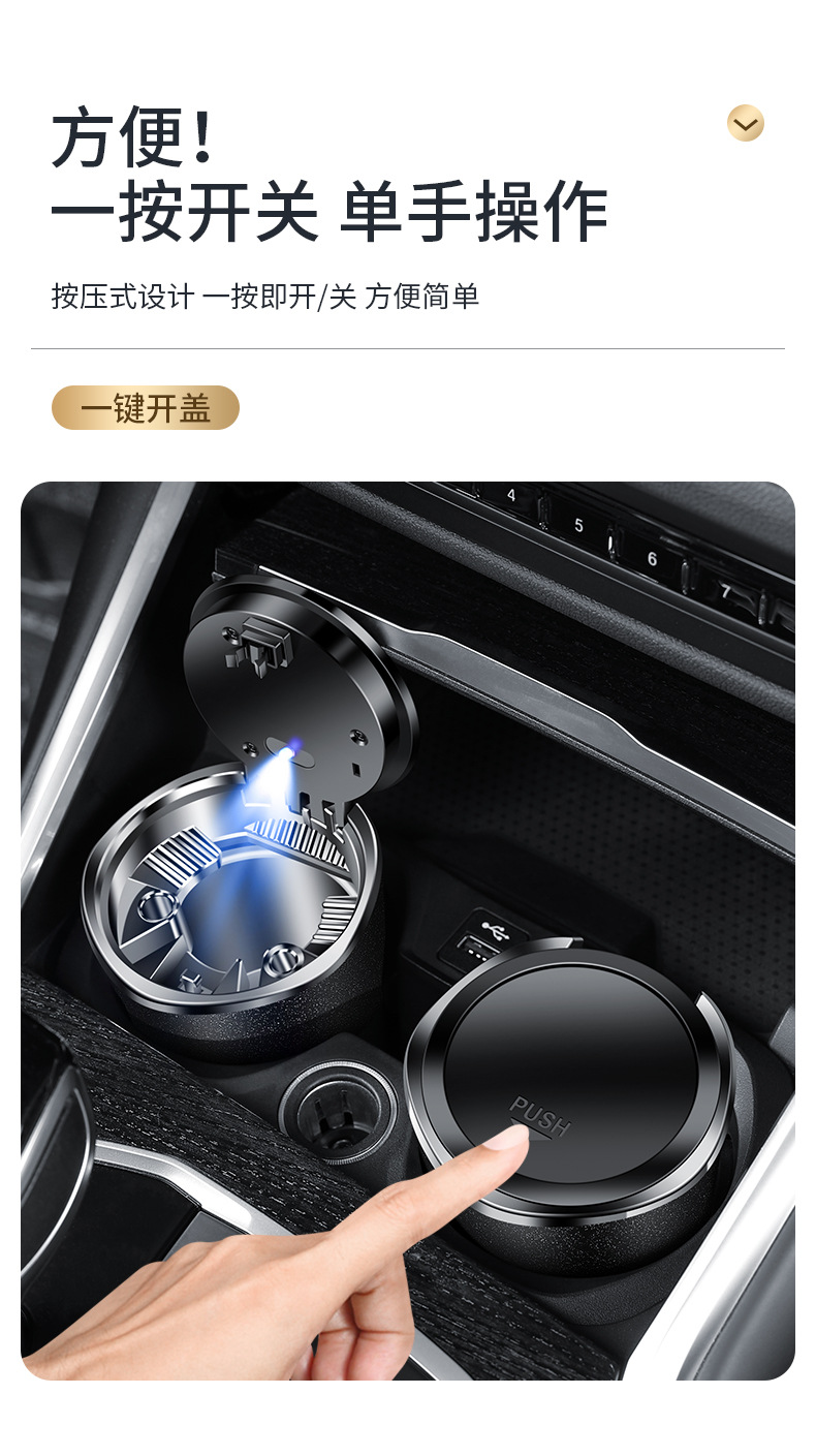 자동차 재떨이 창조적 인 LED 빛 원 키 오픈 커버 다기능 스테인레스 스틸 라이너 재떨이 자동차 재떨이스토어 가기