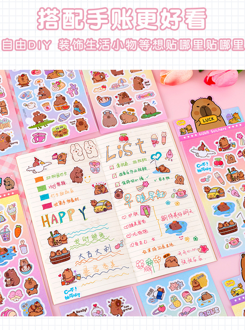 창조적 인 만화 손 계정 스티커 선물 어린이 방수 구 카드 소재 붙여 넣기 컵 페이스트 DIY 장식 레이저 페이스트 3스토어 가기