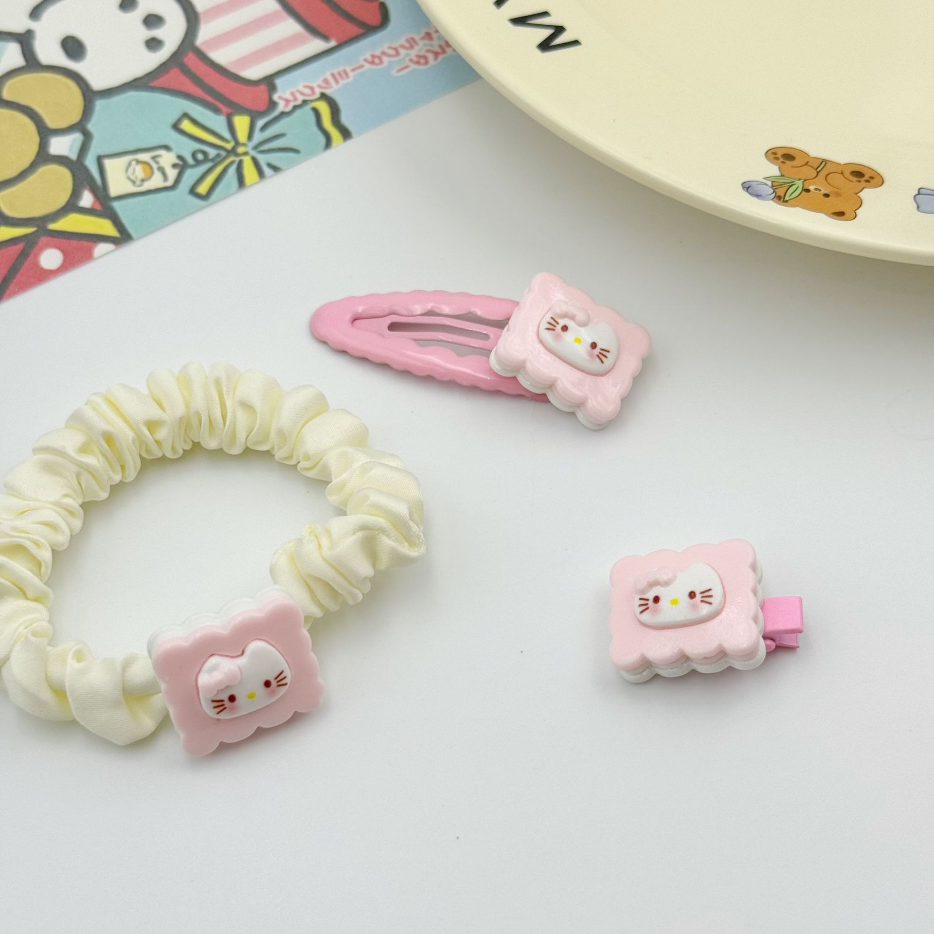 핑크 만화 고양이 머리핀 머리 반지 달콤한 귀여운 소녀 앞머리 클립 공 머리 밧줄 귀여운 소녀 학생 헤어 액세서리