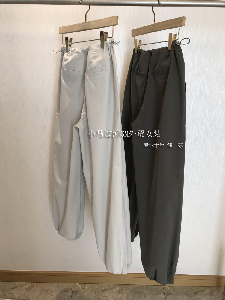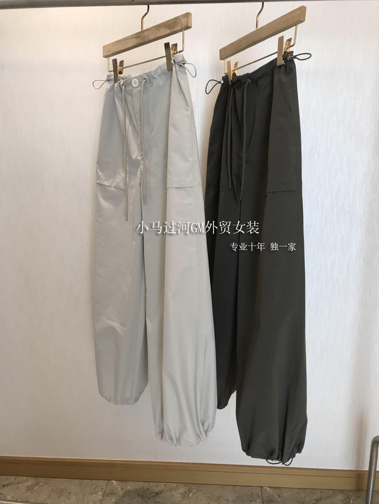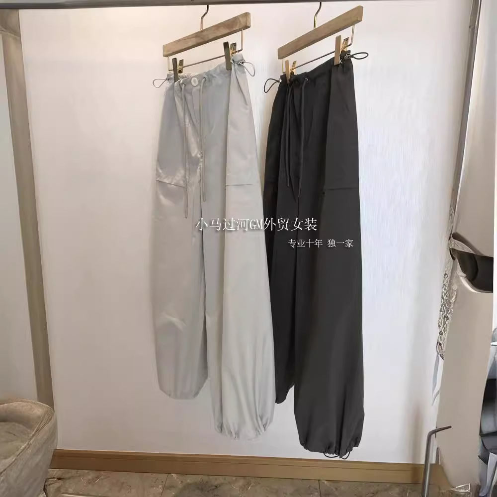 여름 좁은 판 여성 크록 바지 넓은 다리 바지 캐주얼 2024 새로운 틈새 빠른 건조 스포츠 등산 낙하산 바지스토어 가기