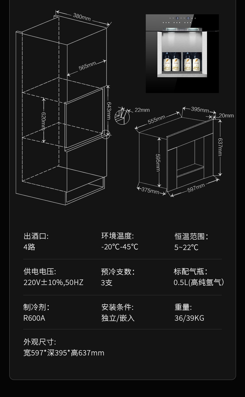 • 3 헤드 와인 유통 기계 (완전히 임베디드 모델)