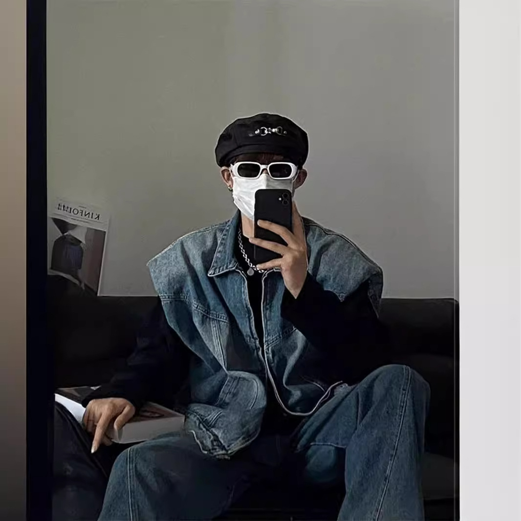 미국 빈티지 세탁 데님 조끼 여름 하이 엔드 틈새 자켓 민소매 웨이스트 코트 남자 조끼