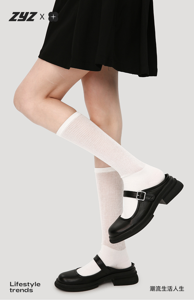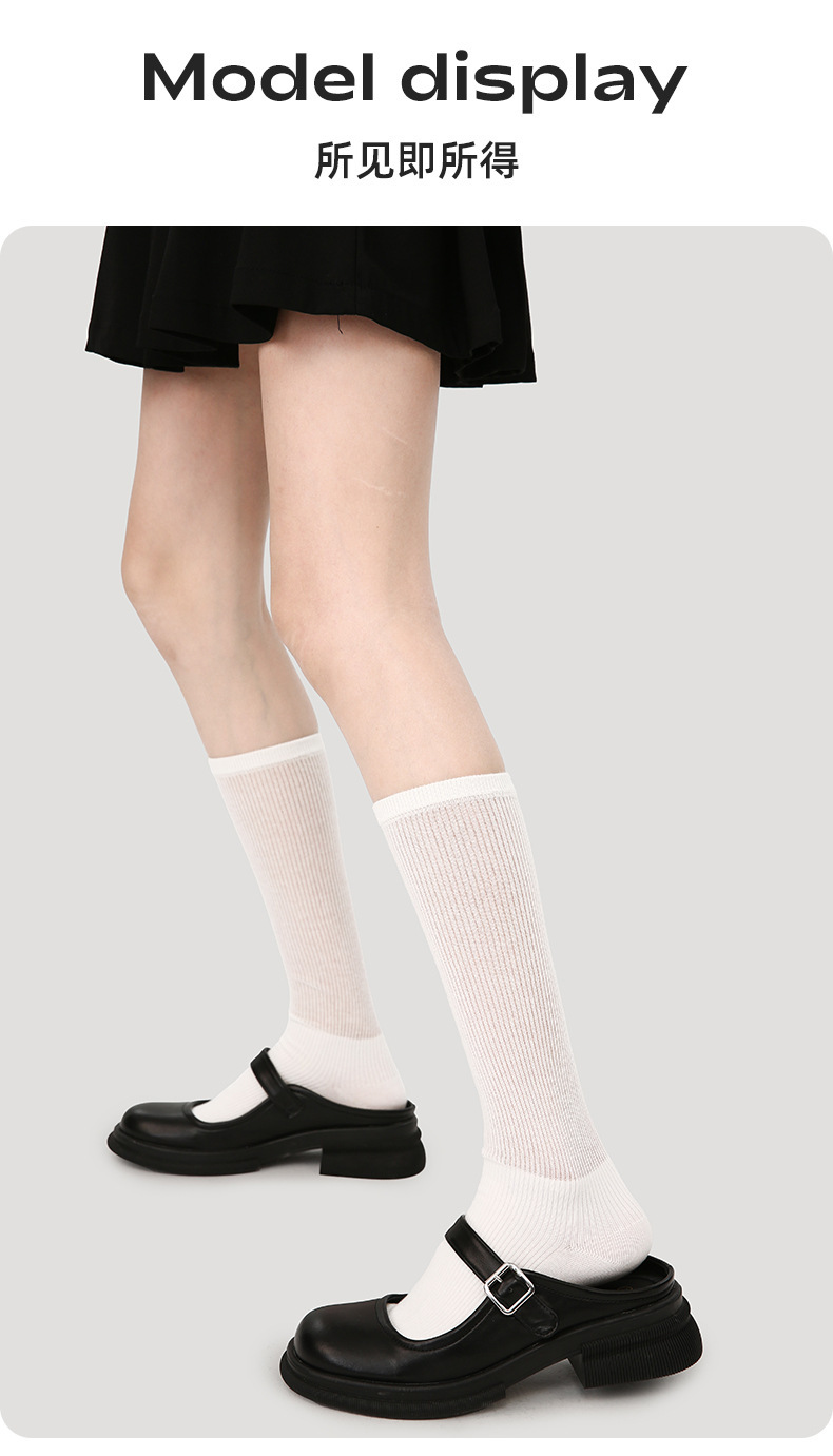르네상스 봄과 여름 얇은 일본 JK 마이크로 압력 스키니 다리 중간 스타킹 어린이 순수 화이트 태양 방지 및 모기 방지 커프 양말스토어 가기