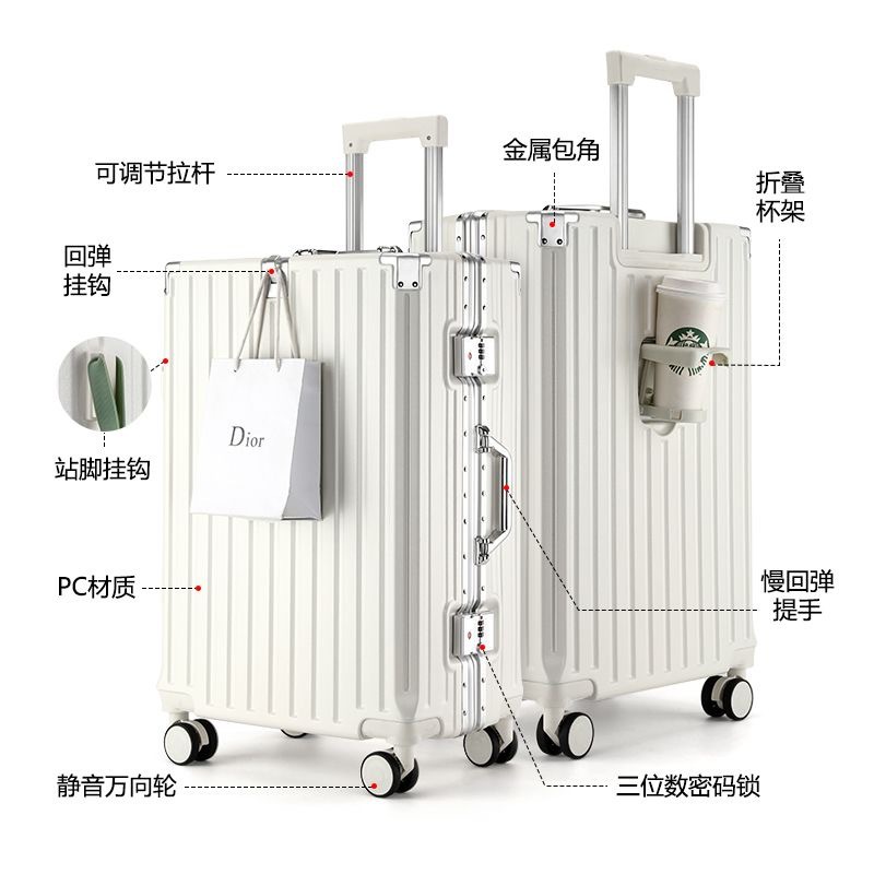 알루미늄 프레임, 컵홀더, 레버형, 남녀공용, 내압성, 내마모성, 튼튼한, 비밀번호 잠금장치가 있는 여행용 가방스토어 가기