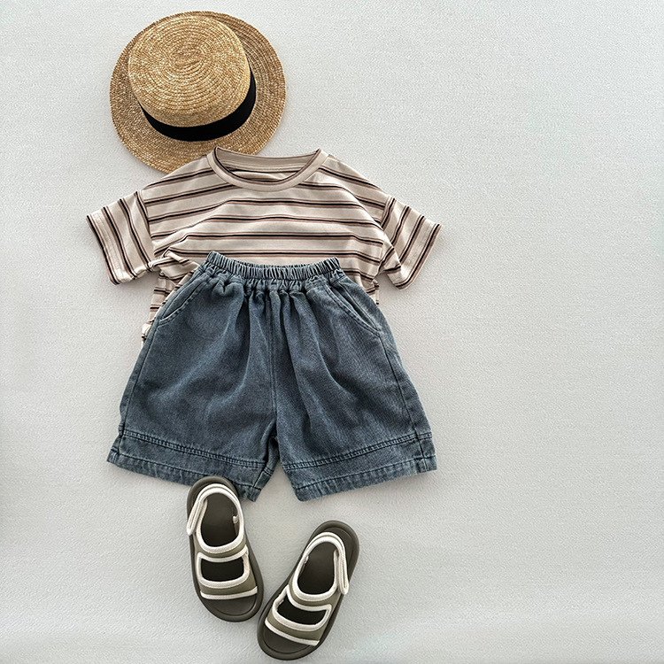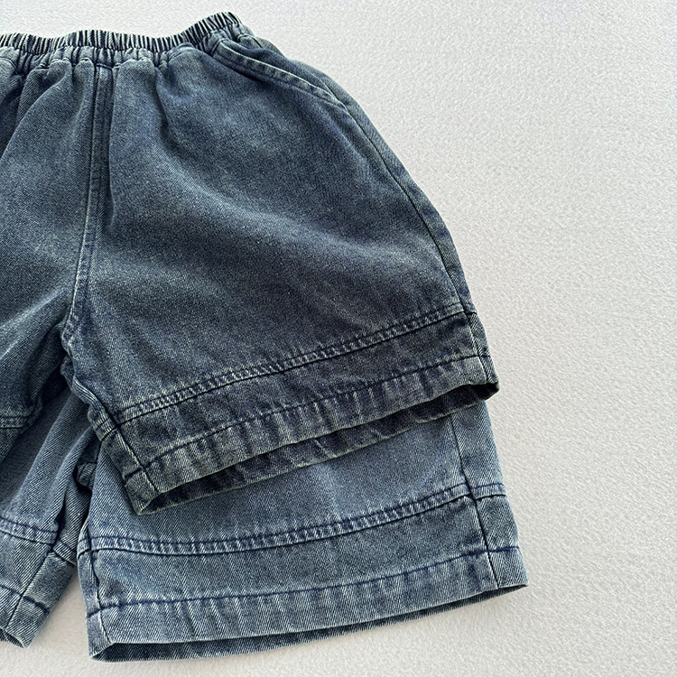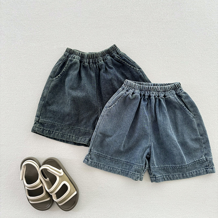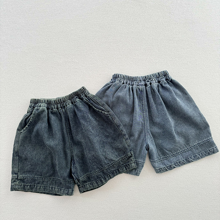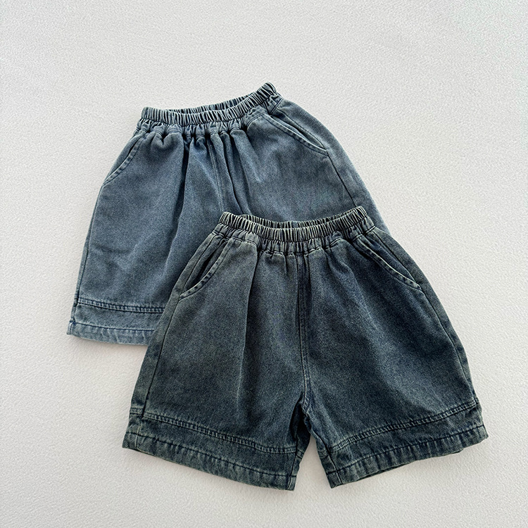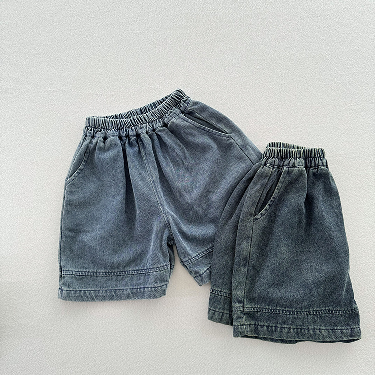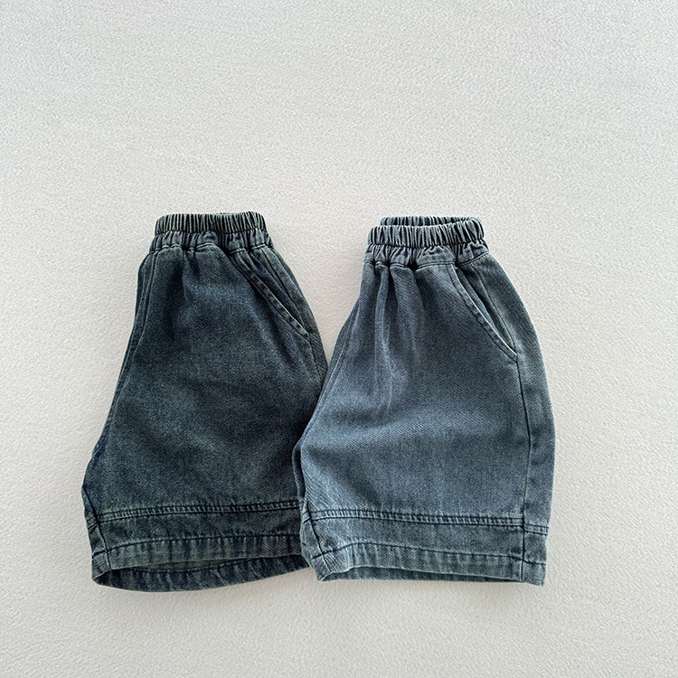 남학생과 여학생을위한 여름 어린이 맞춤형 레트로 캐주얼 5 점 중간 길이 바지 일본 및 한국 스타일 서양식 바느질 얇은 청바지스토어 가기