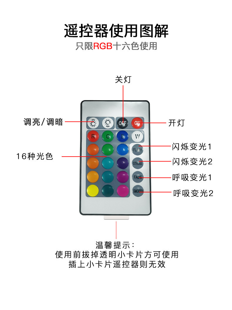 • "플라스틱베이스" 16 색 24 키 원격 제어 "USB 충전]