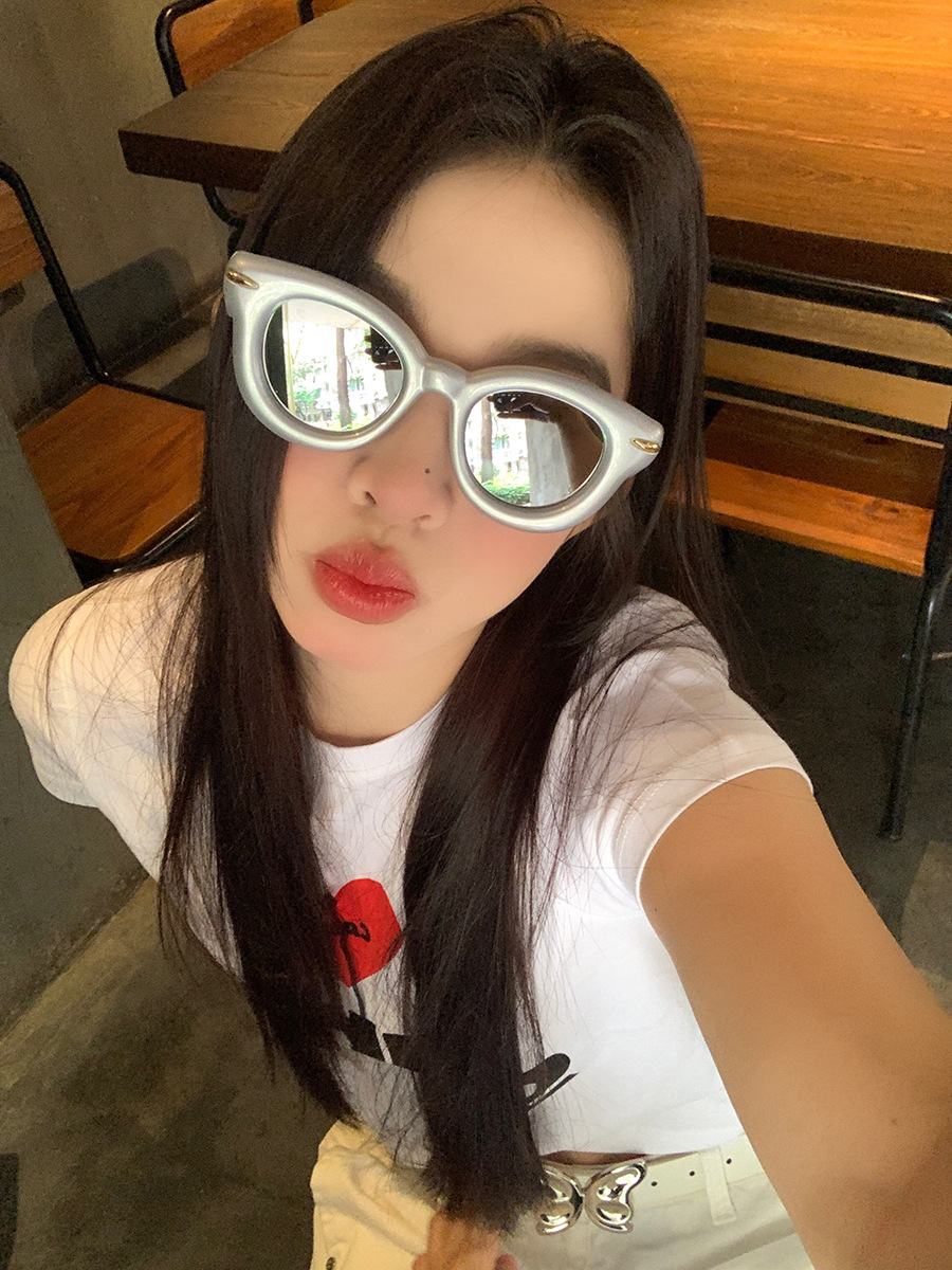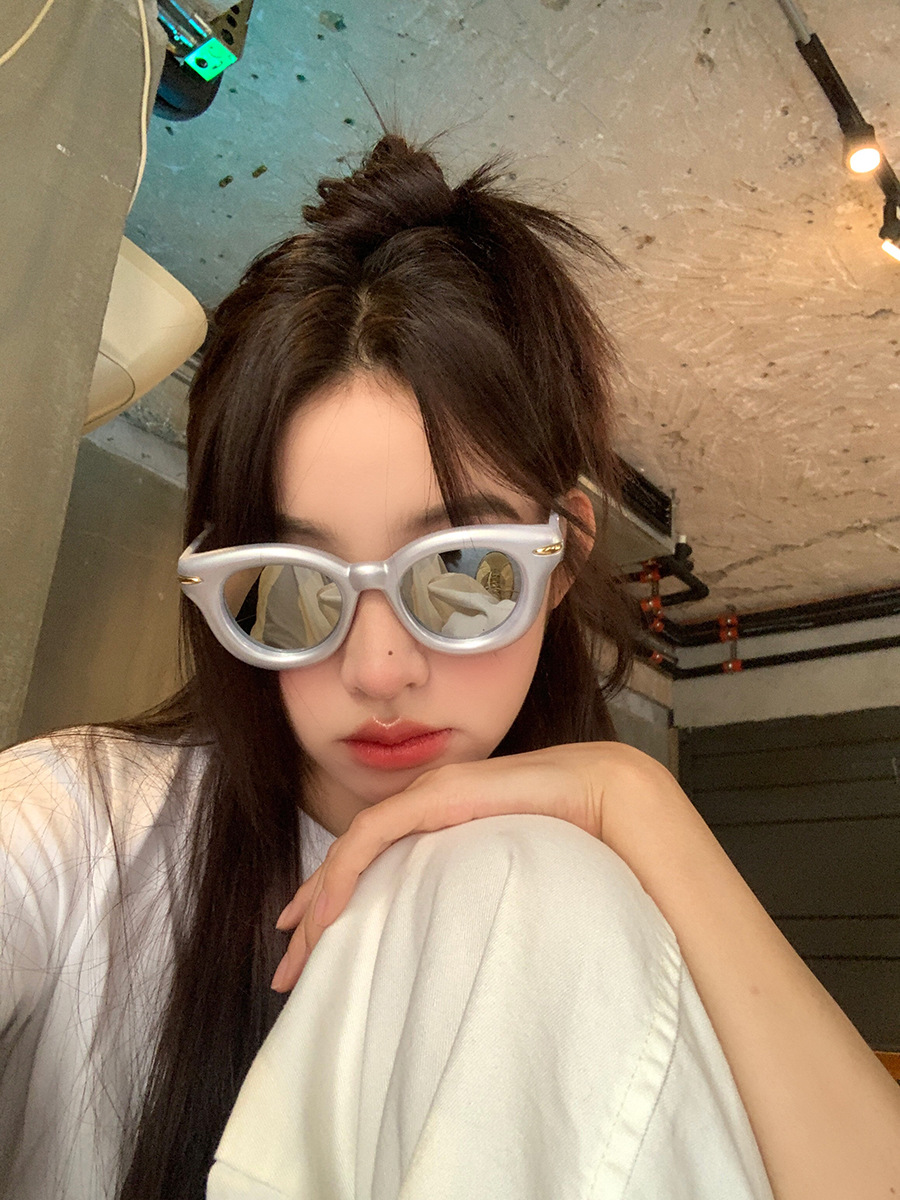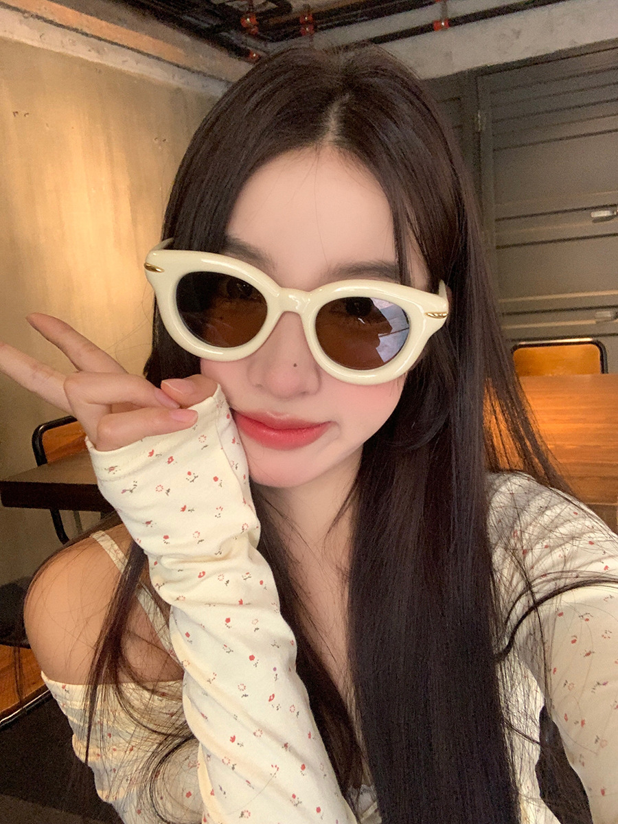 Ins 귀여운 핑크 선글라스 여성용 유행 유럽과 미국의 풍선 선글라스 미니 양 라운드 맞춤형 장식 안경스토어 가기