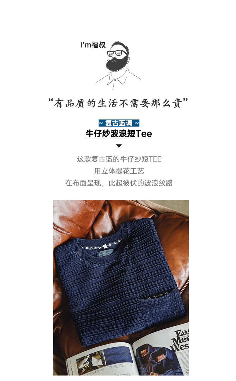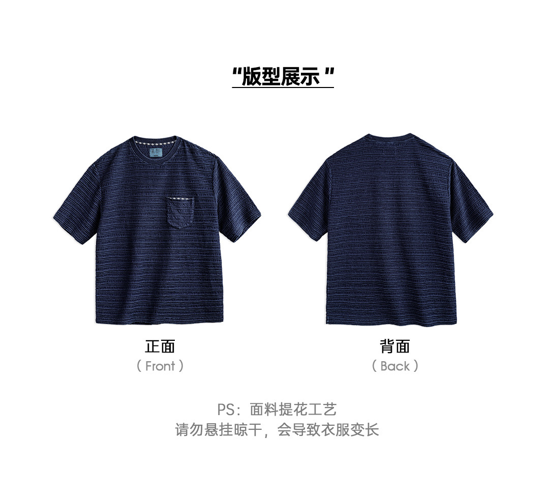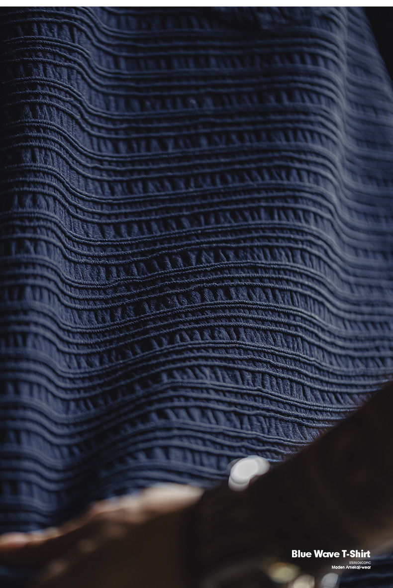 매든 툴링 아메리칸 스타일 레트로 니트 자카드 물결 티셔츠 질감 카키 남성용 느슨한 반팔 티셔츠 여름