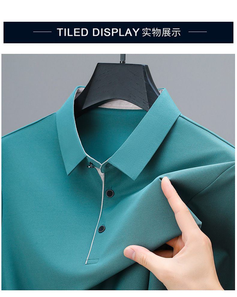 아빠 여름 의류 중년 캐주얼 남성 반팔 티셔츠 아이스 실크 중년 남성 여름 탑 폴로 셔츠 세대 헤어