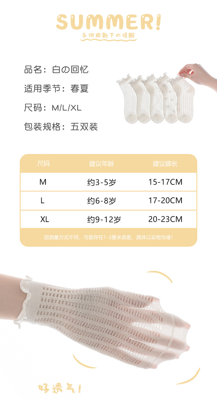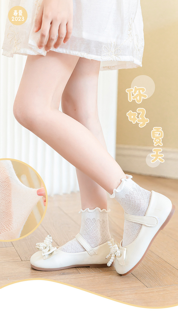 초박형 어린이 양말 봄과 여름 메쉬 나무 귀 통기성 어린이 양말 짧은 얇은 양말 소녀 양말