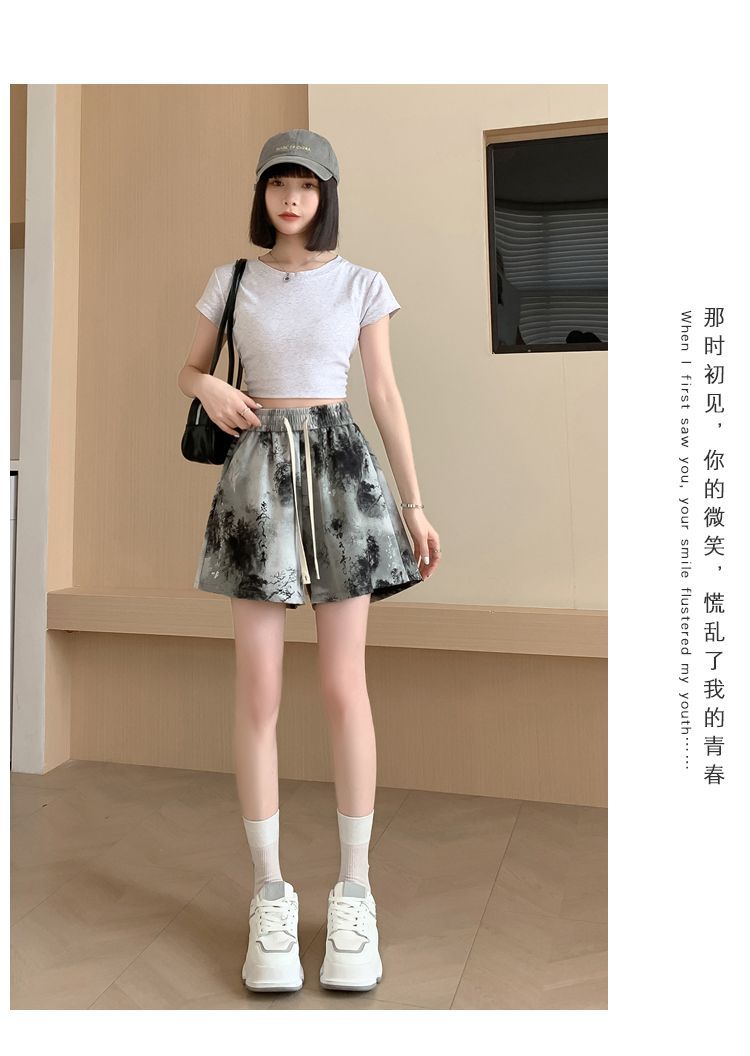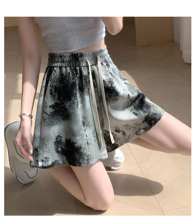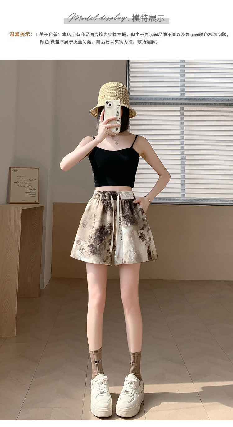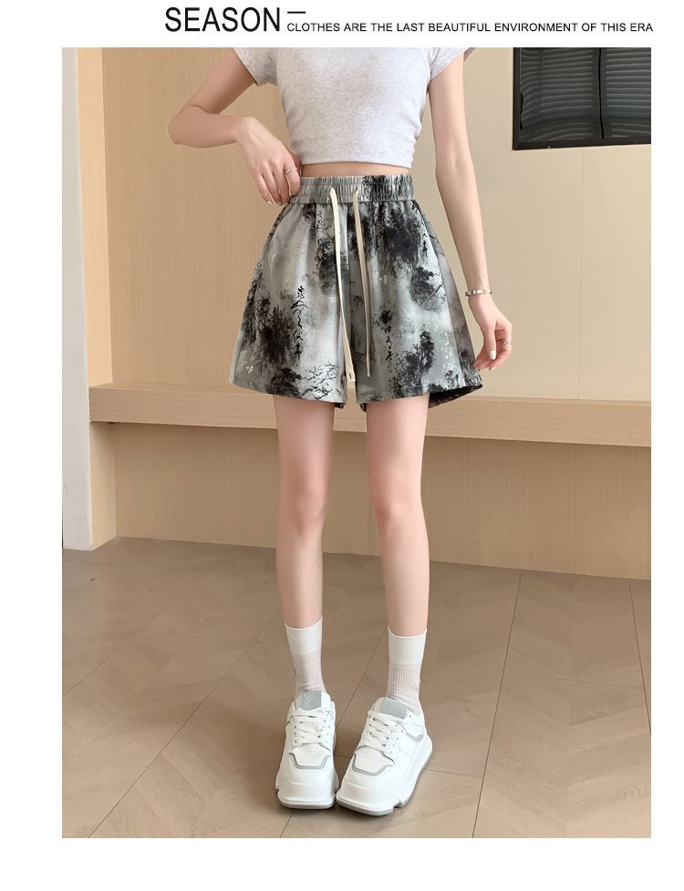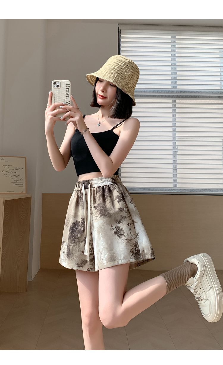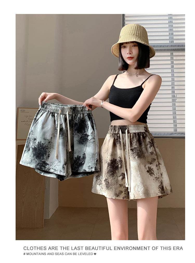 얼음 실크 빠른 건조 새로운 중국 스타일 잉크 인쇄 반바지 여성 넓은 다리 바지 여름 국립 스타일 반바지 느슨한 스트레이트 캐주얼 바지스토어 가기