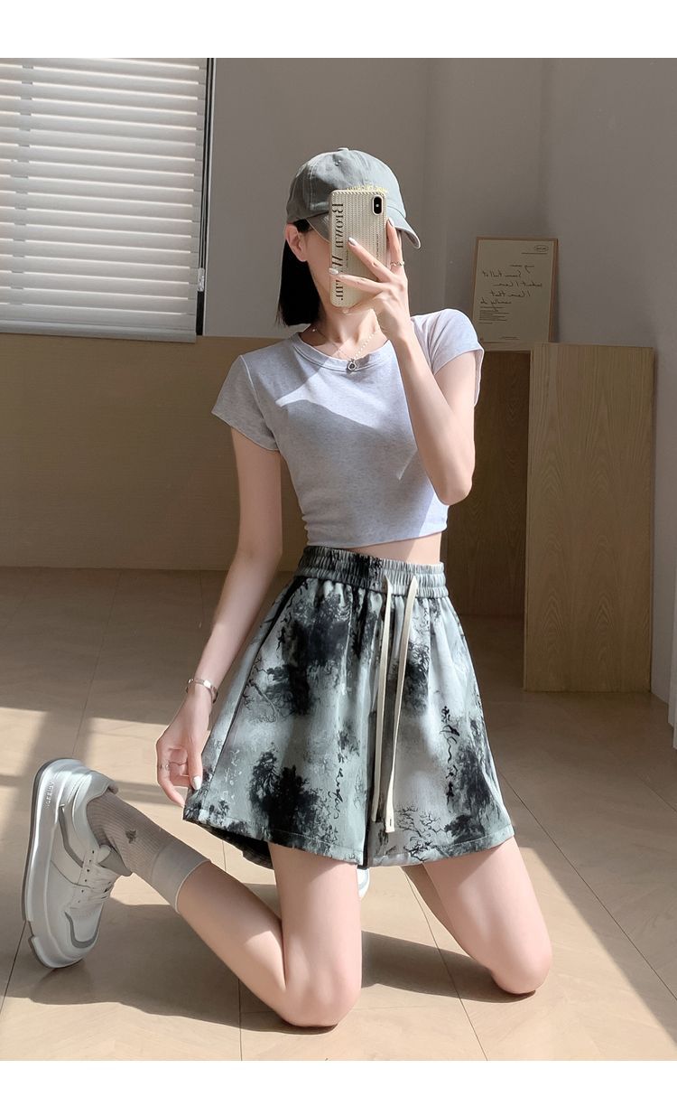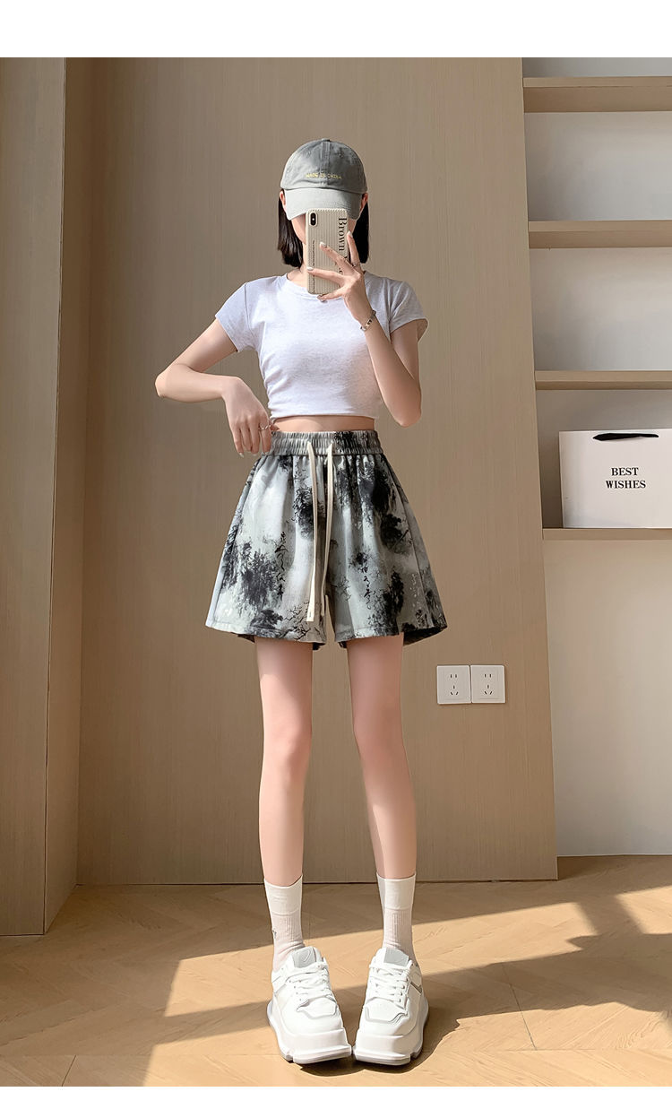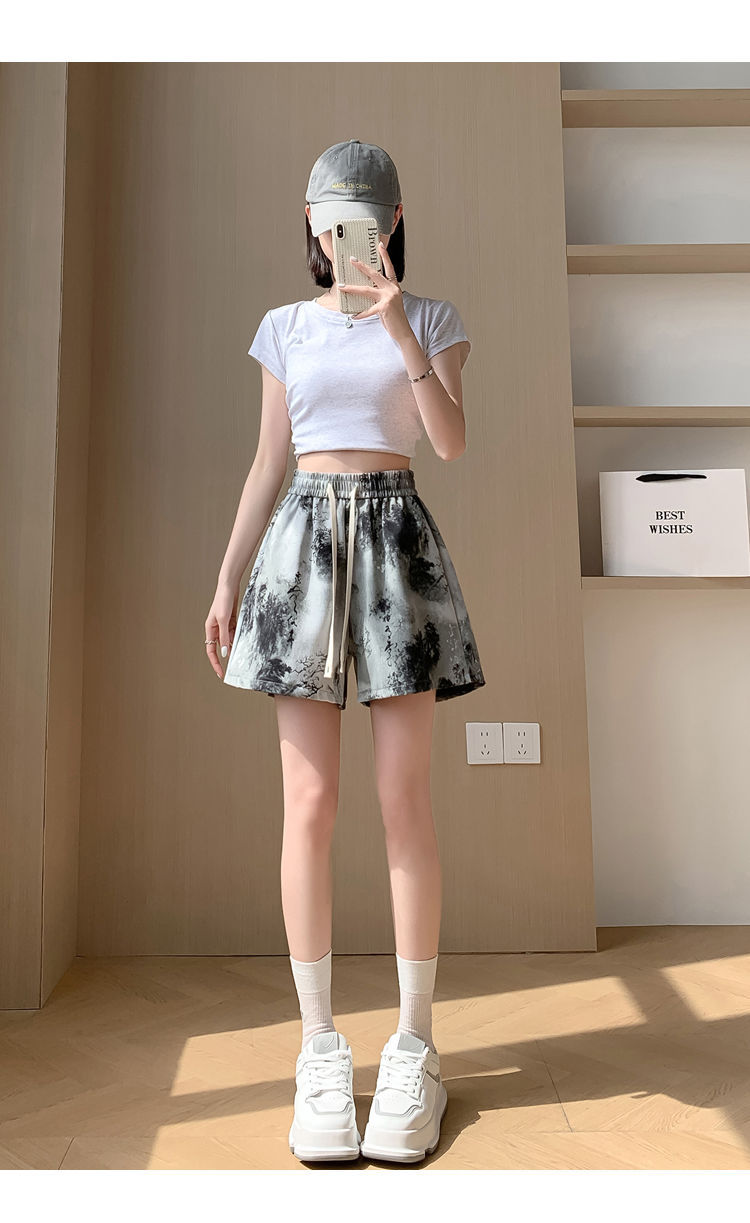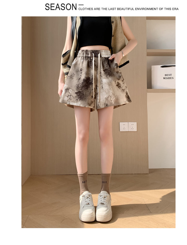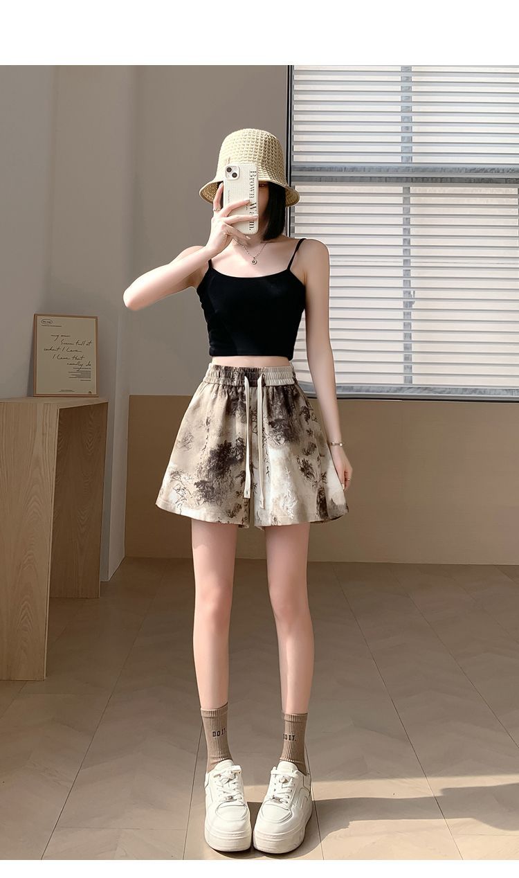 얼음 실크 빠른 건조 새로운 중국 스타일 잉크 인쇄 반바지 여성 넓은 다리 바지 여름 국립 스타일 반바지 느슨한 스트레이트 캐주얼 바지스토어 가기