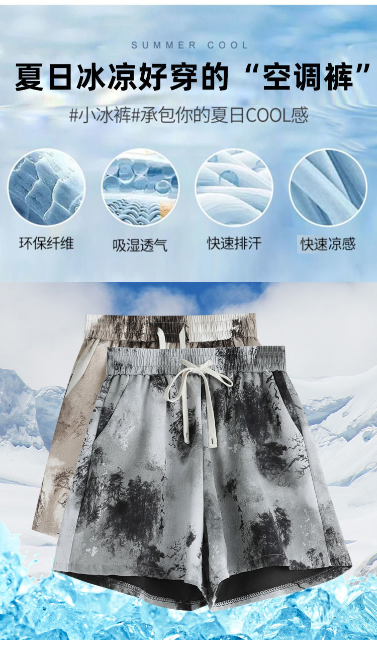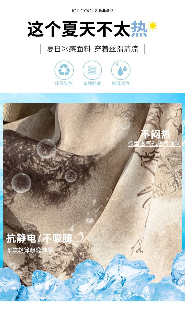 얼음 실크 빠른 건조 새로운 중국 스타일 잉크 인쇄 반바지 여성 넓은 다리 바지 여름 국립 스타일 반바지 느슨한 스트레이트 캐주얼 바지
