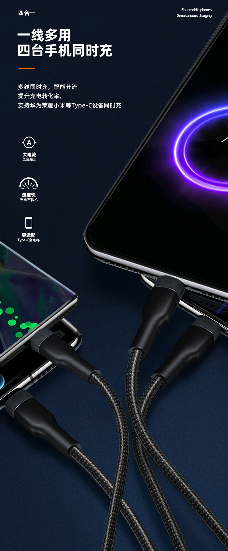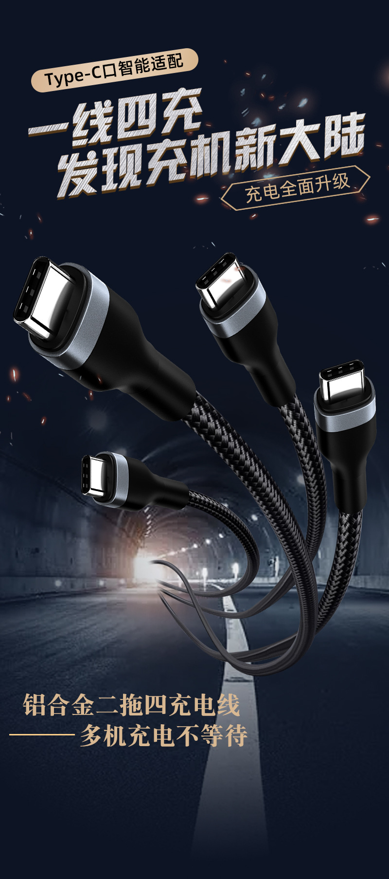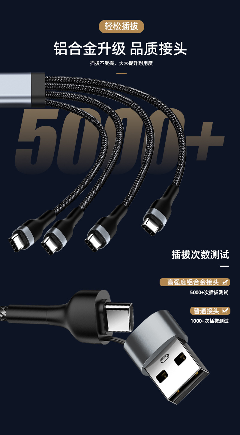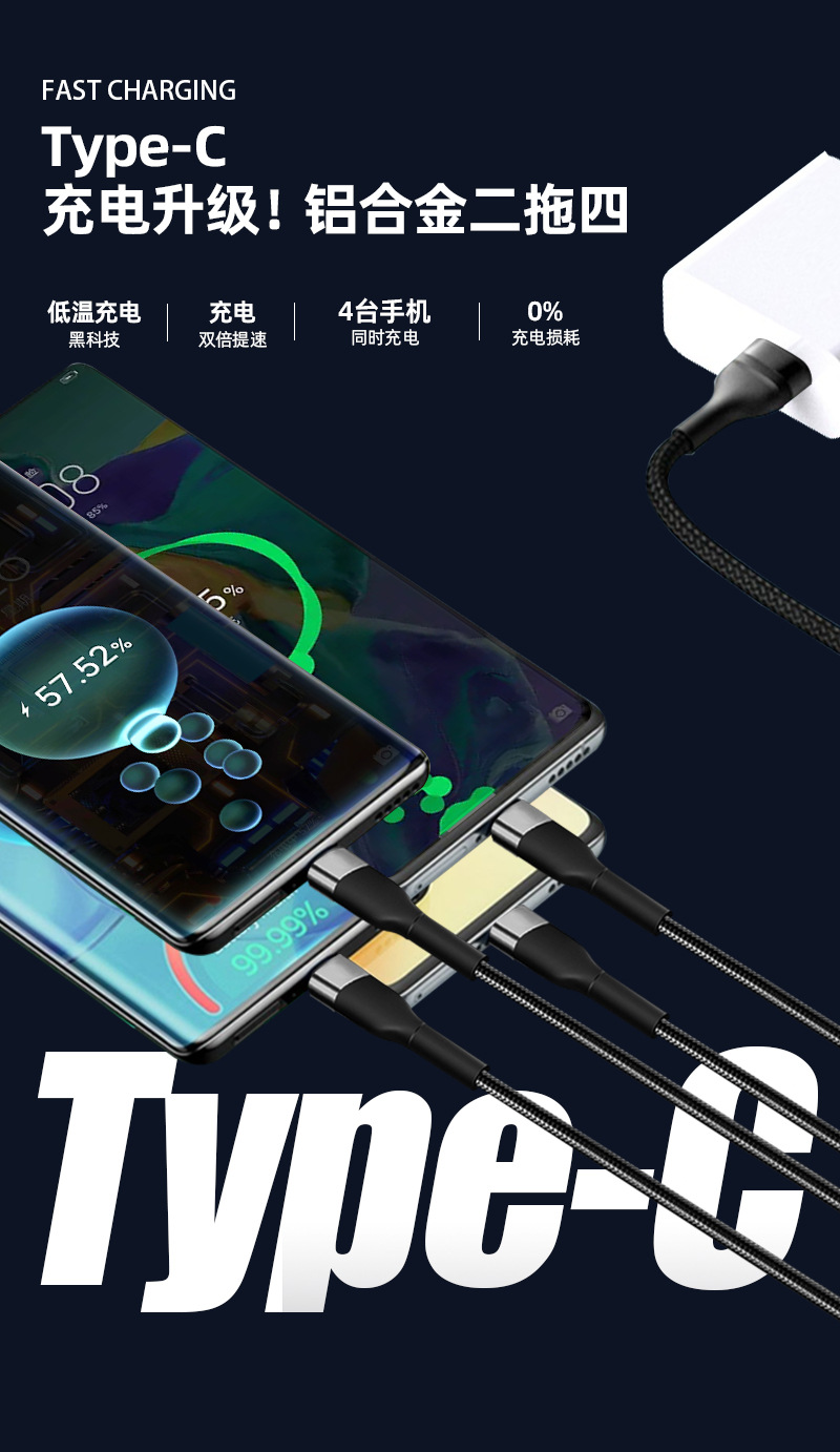 멀티 헤드 충전 라인, 2 ~ 4 개의 데이터 라인, 4 개의 타입 c 인터페이스 충전 라인은 typeC 포트 장비에 적합합니다.스토어 가기