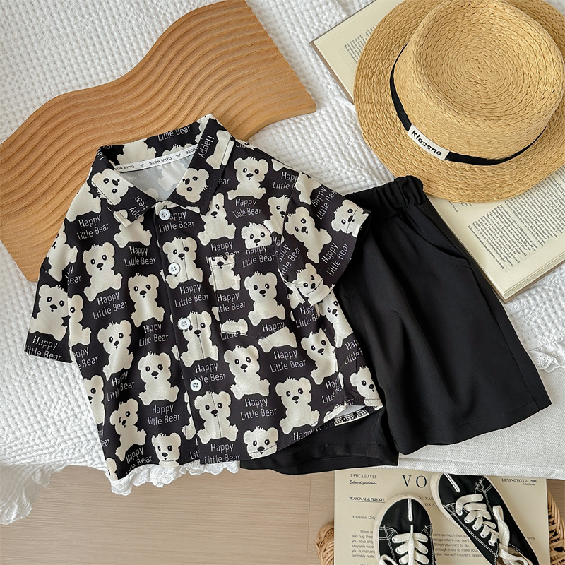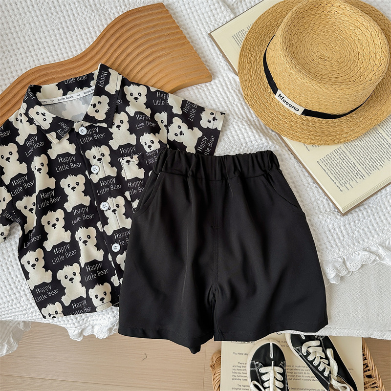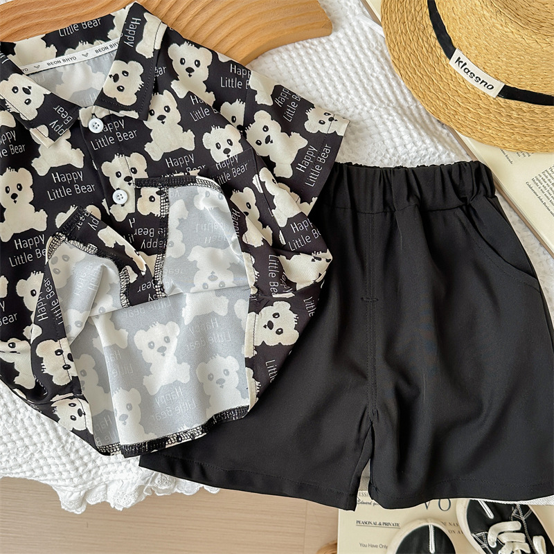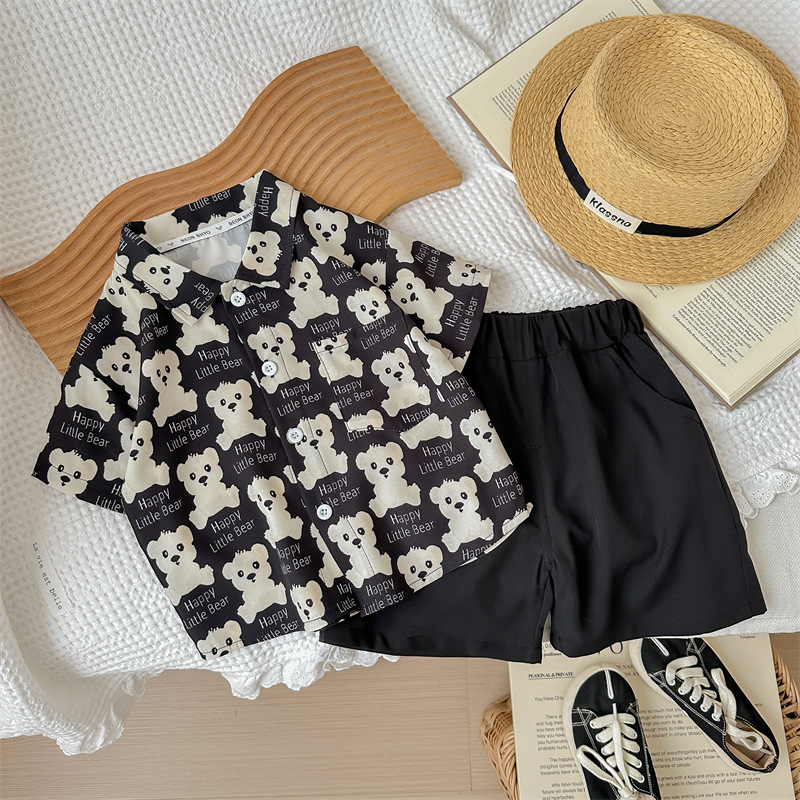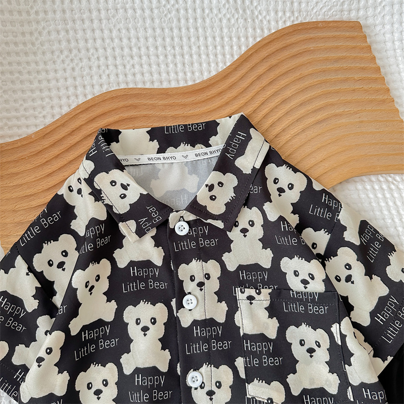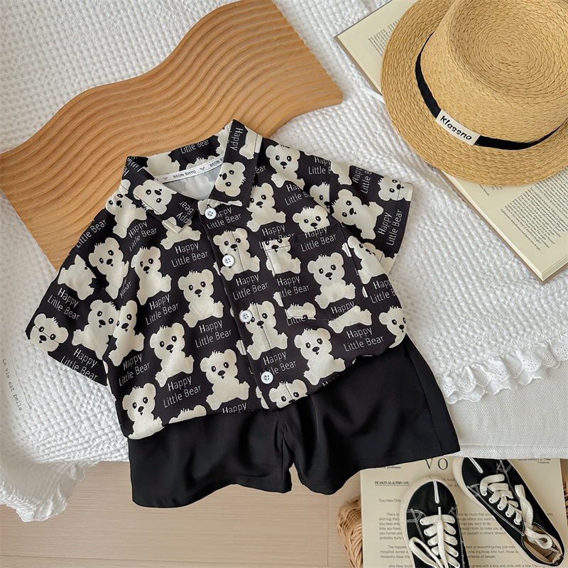 2024 새로운 여름 전체 인쇄 곰 반팔 세트 소년 아기 캐주얼 투피스 세트