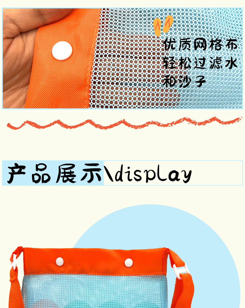 국경을 넘는 어린이 장난감 정리 가방, 빈틈이 있는 메쉬 비치백, 수납 가방, 메쉬 가방, 비치백, 메쉬 백스토어 가기
