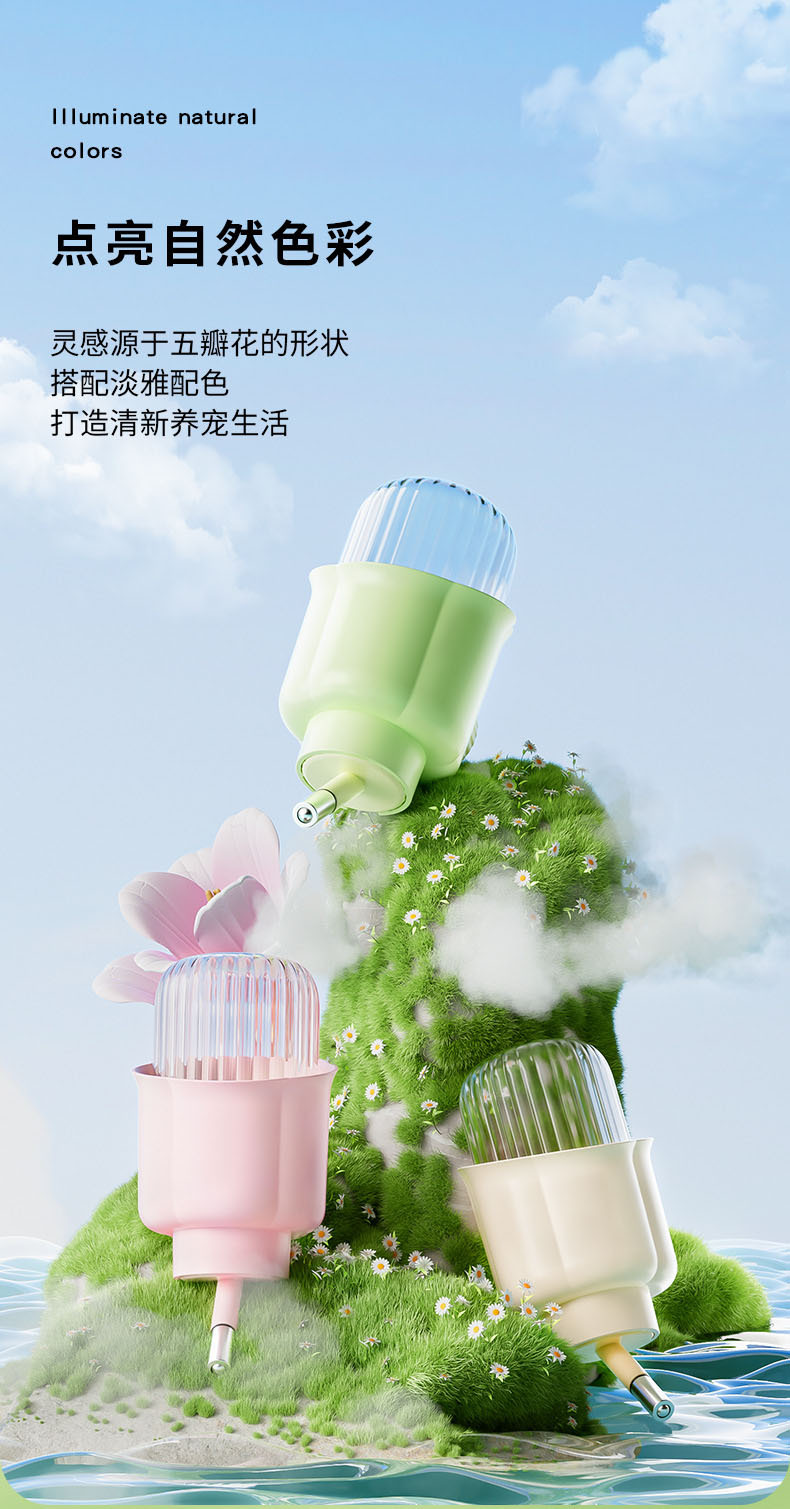 새로운 토끼 물 피더 꽃 주전자 토끼 토토로 작은 애완 동물 교수형 대용량 주전자 와이어 케이지 사용 가능