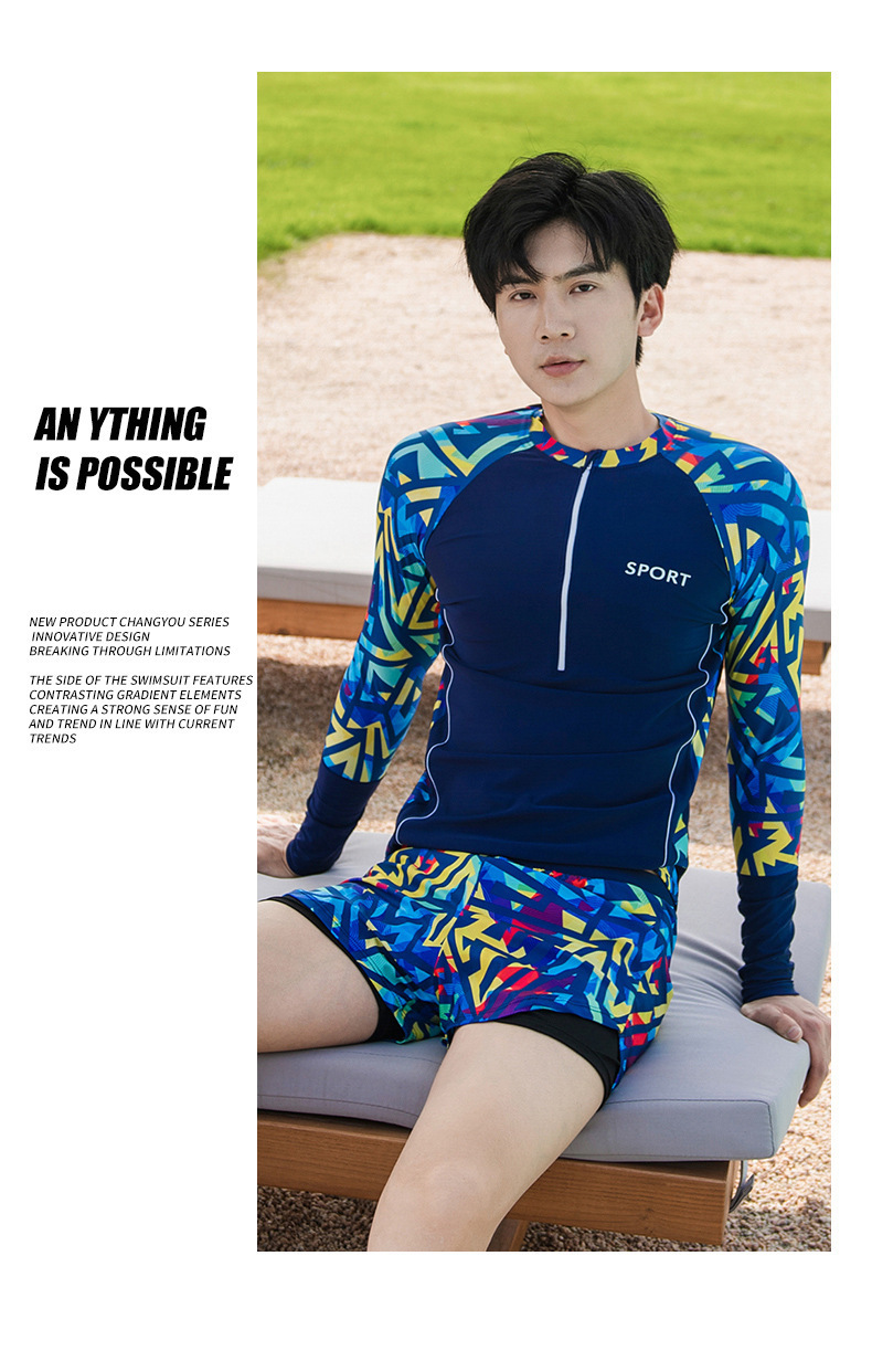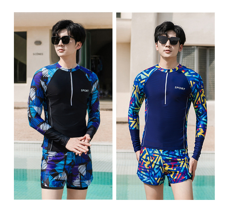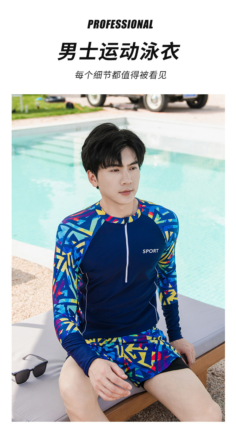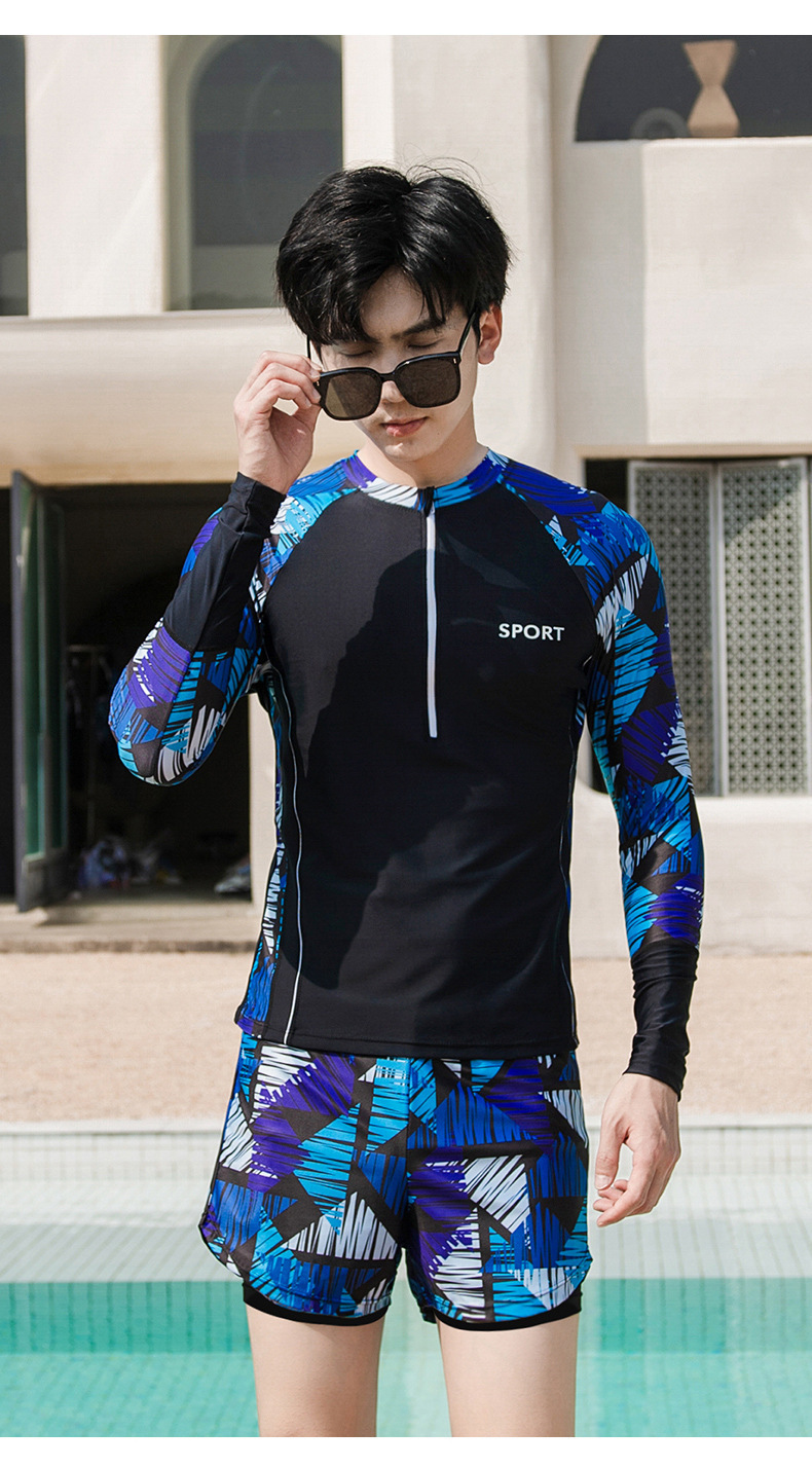 游泳衣男款长袖分体平角裤双层防尴尬大码沙滩漂流速干男士泳装