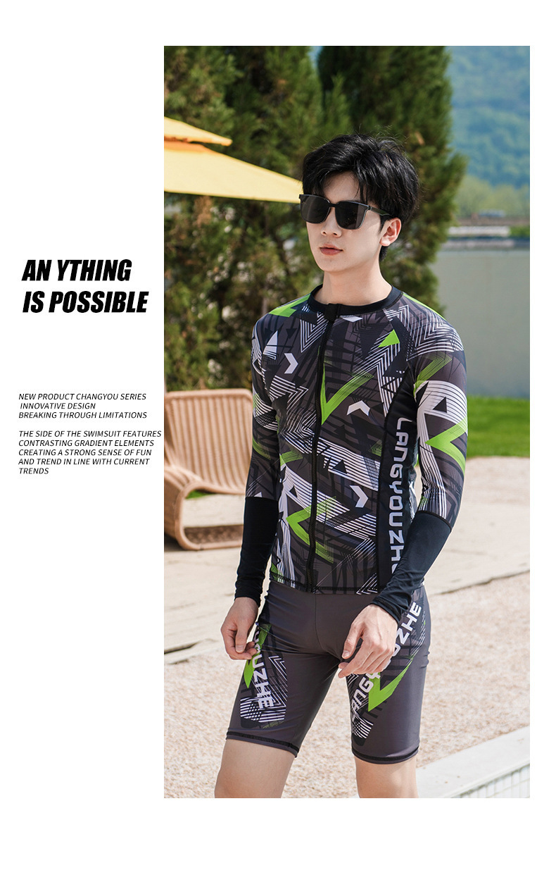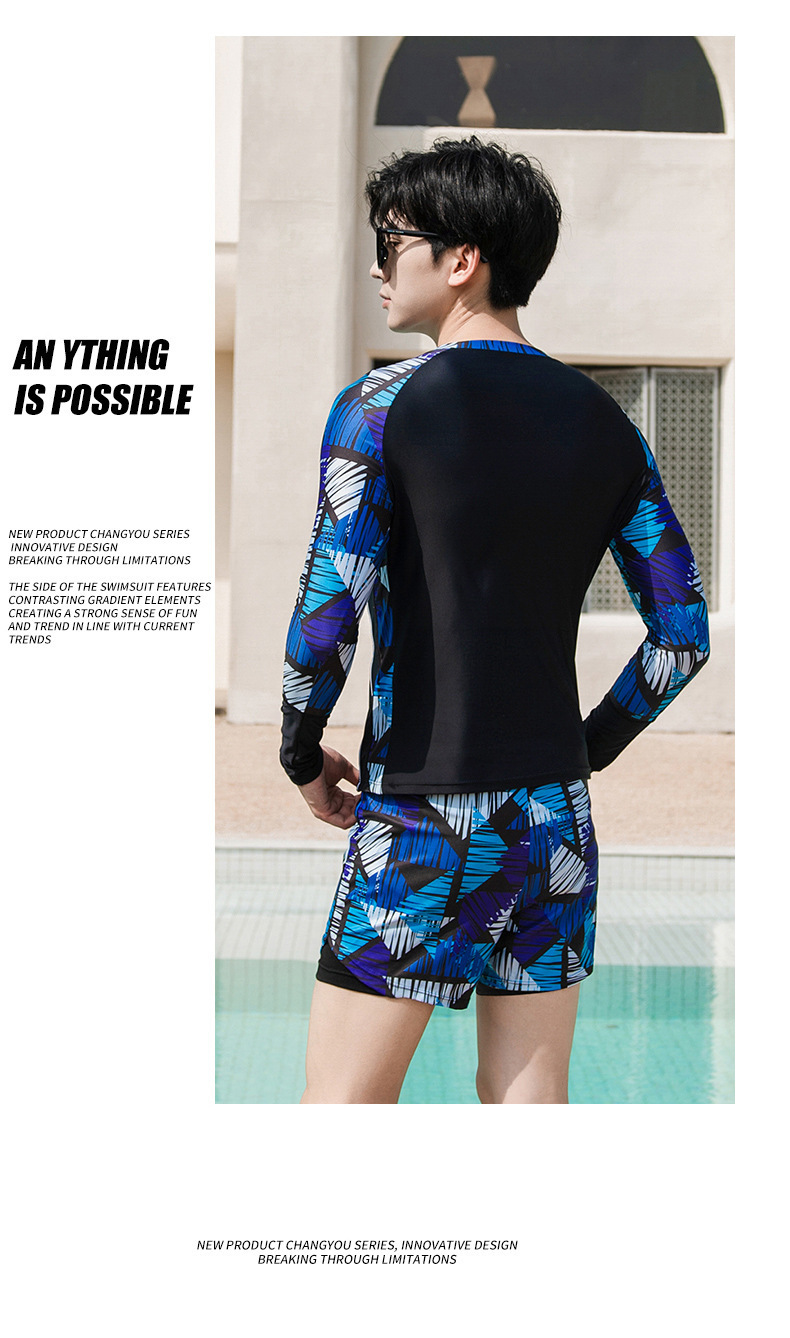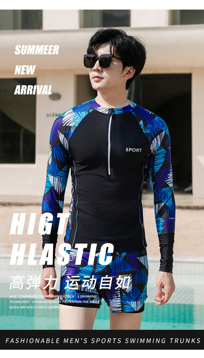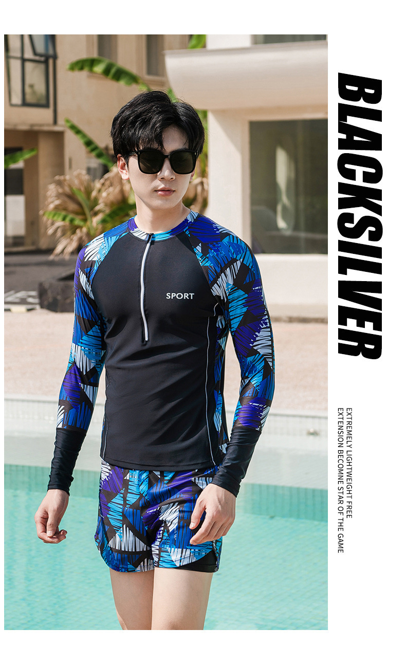 游泳衣男款长袖分体平角裤双层防尴尬大码沙滩漂流速干男士泳装