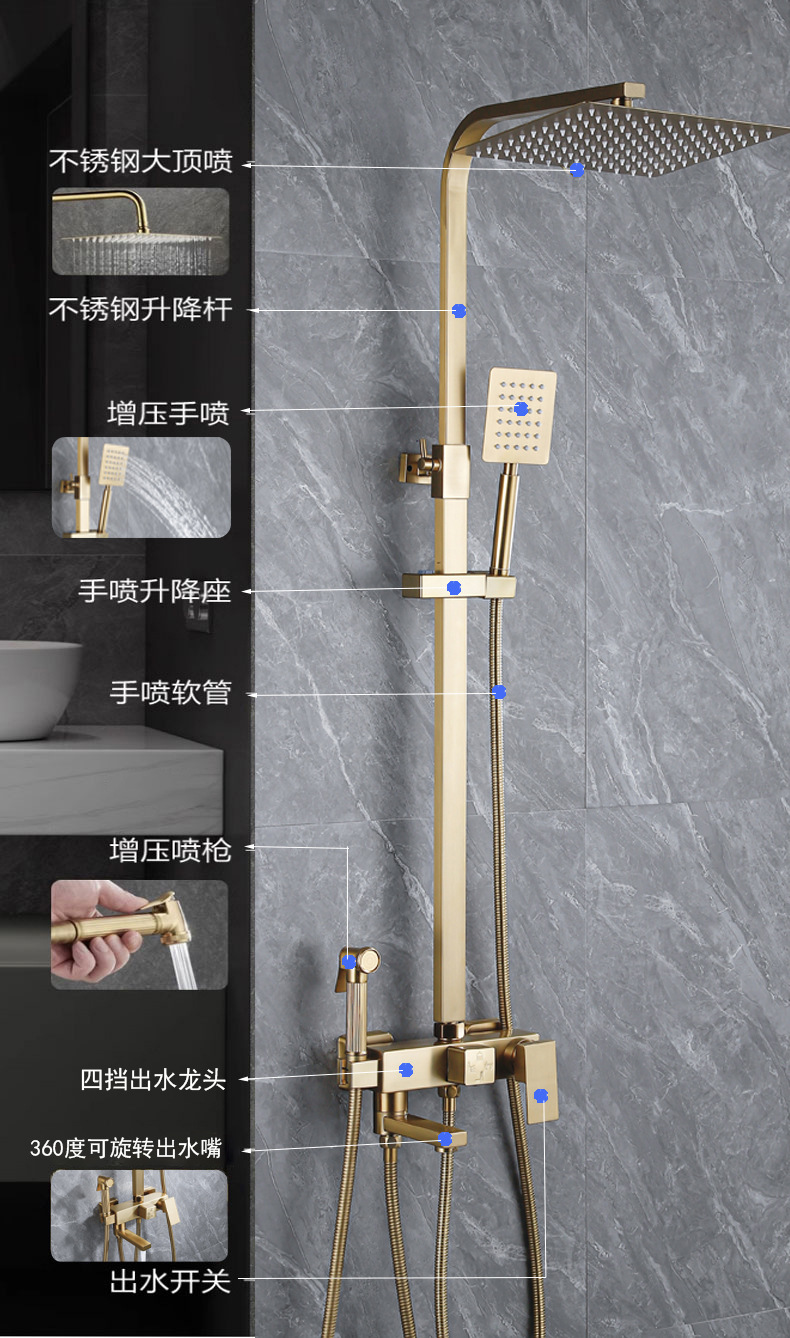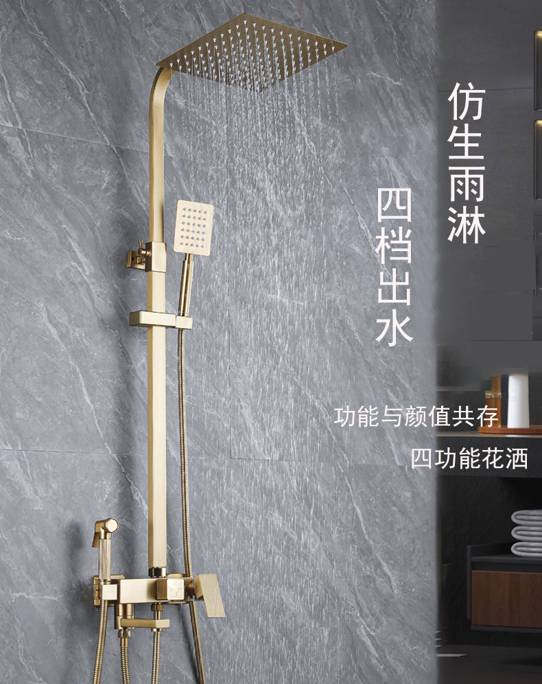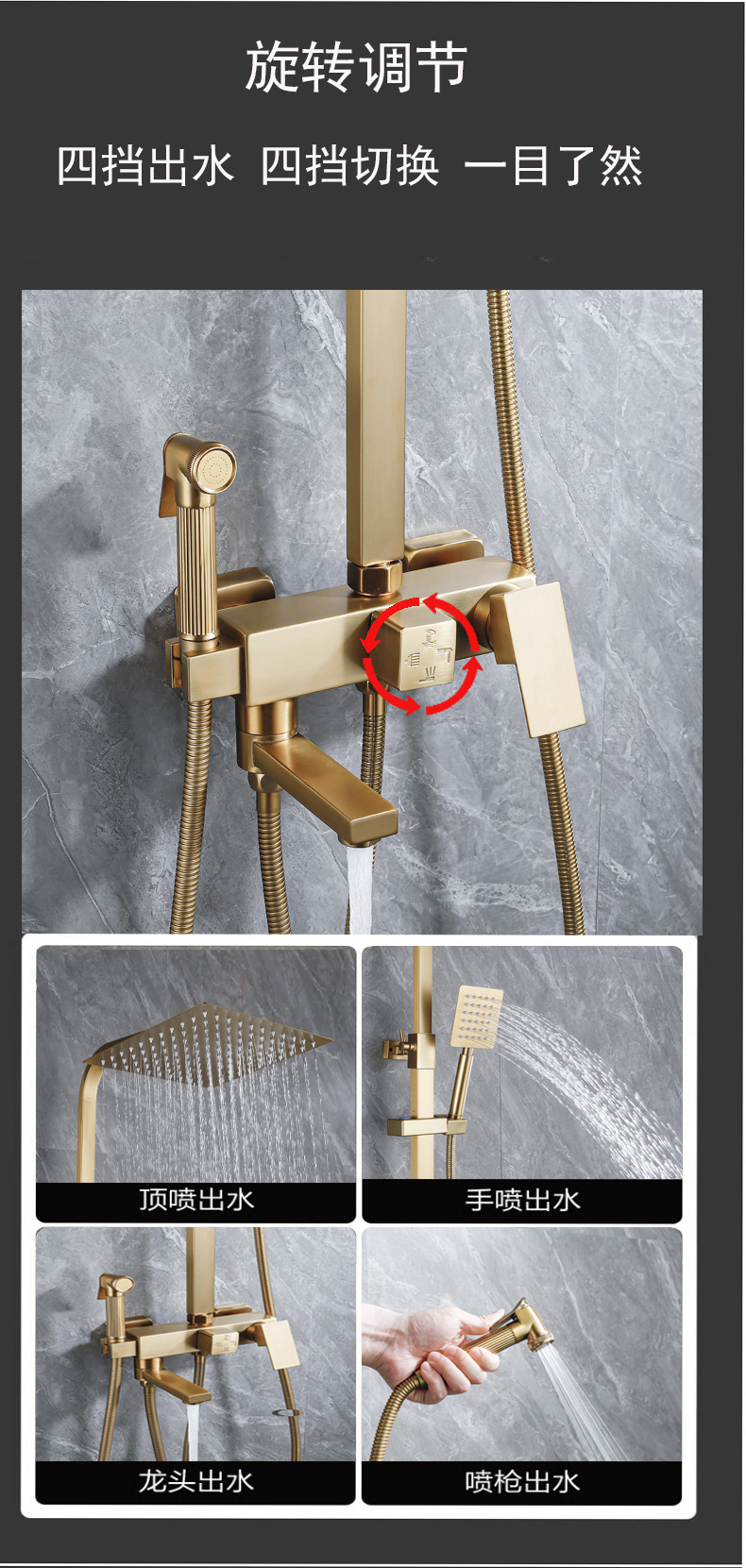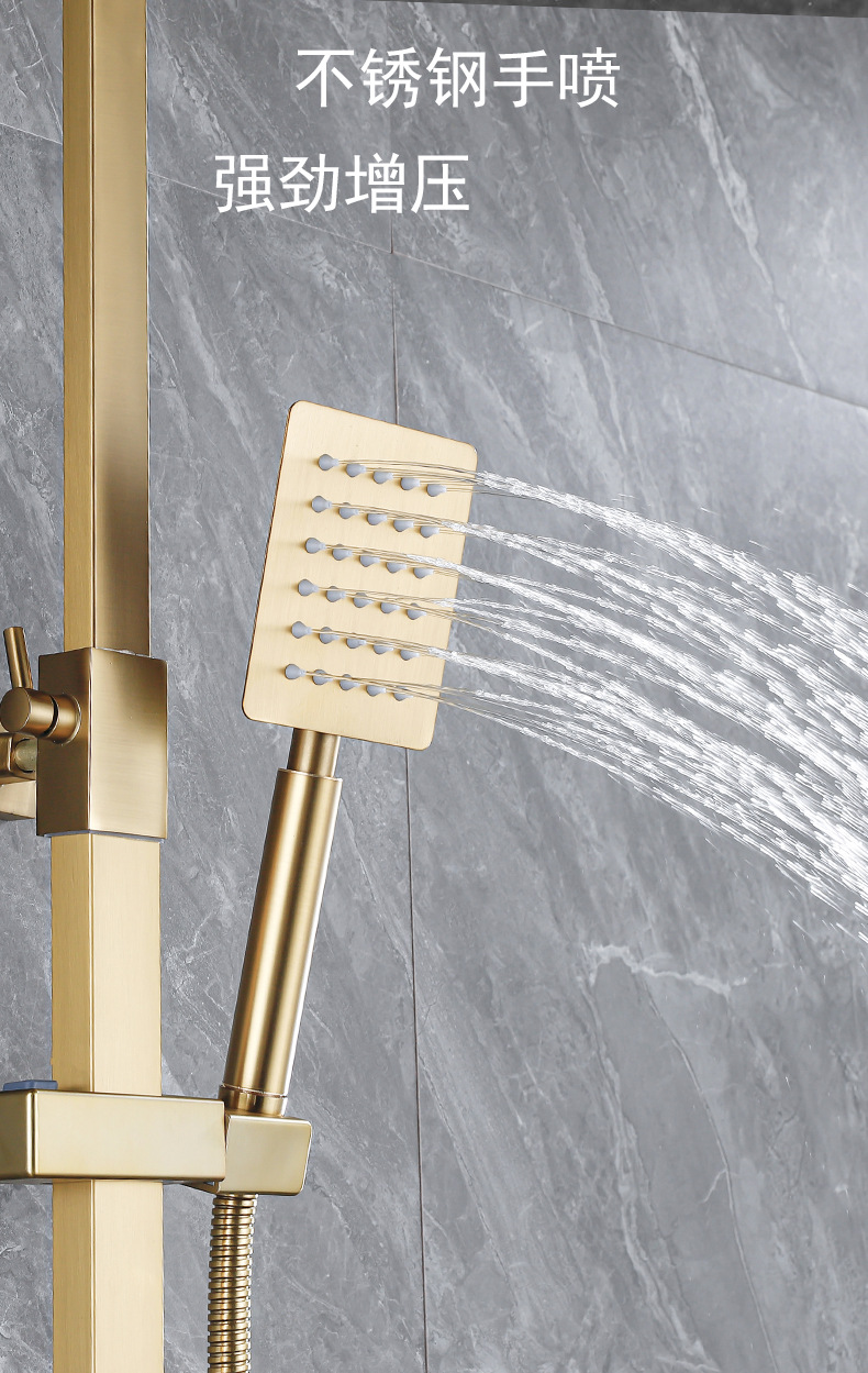 브러시 드 골드 샤워 세트 가정용 간단한 라이트 럭셔리 샤워 화장실 스프레이 건 크로스 보드와 세트 압축