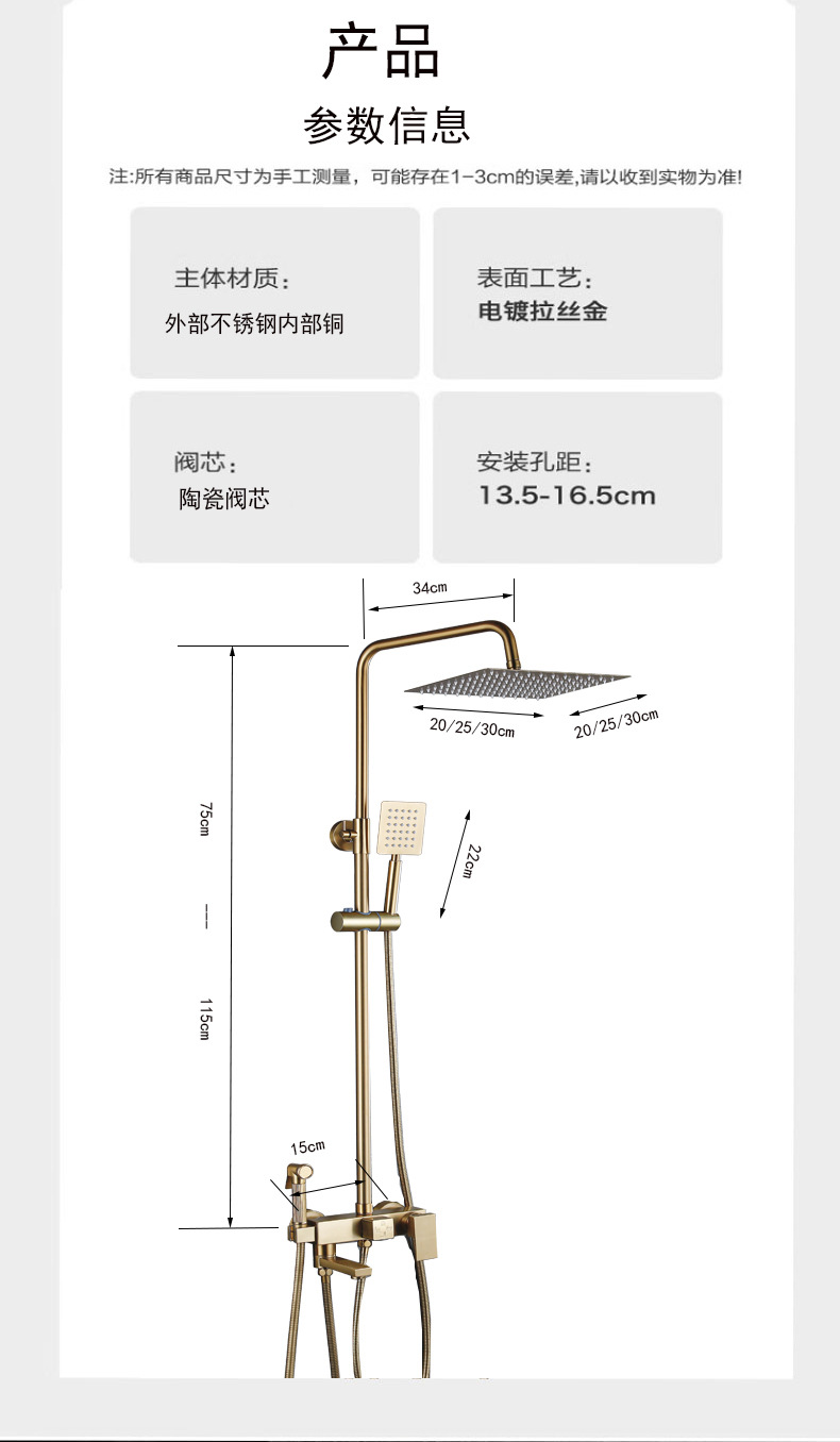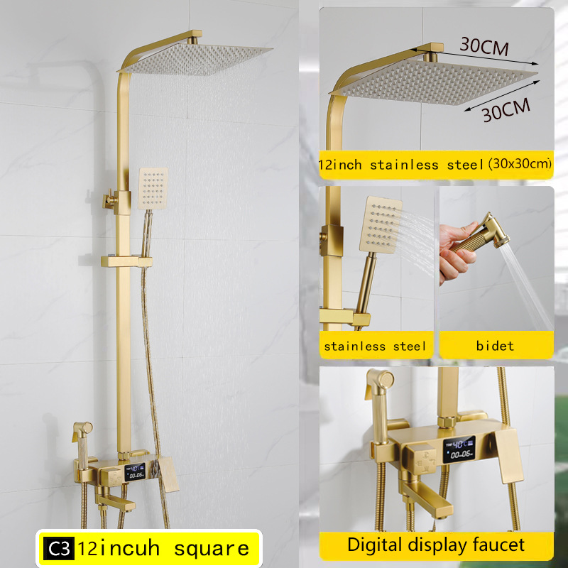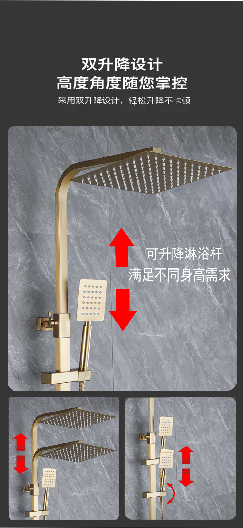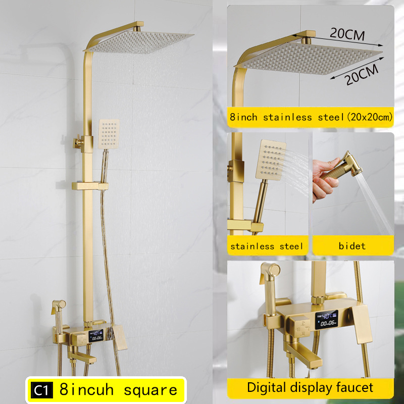 브러시 드 골드 샤워 세트 가정용 간단한 라이트 럭셔리 샤워 화장실 스프레이 건 크로스 보드와 세트 압축