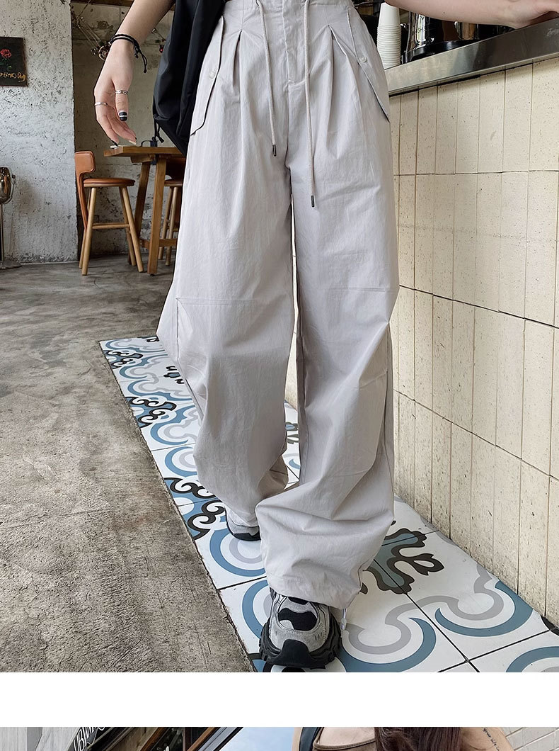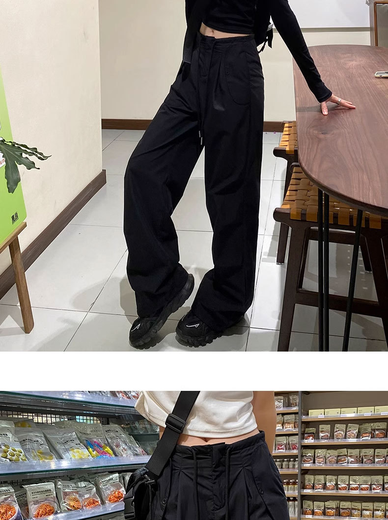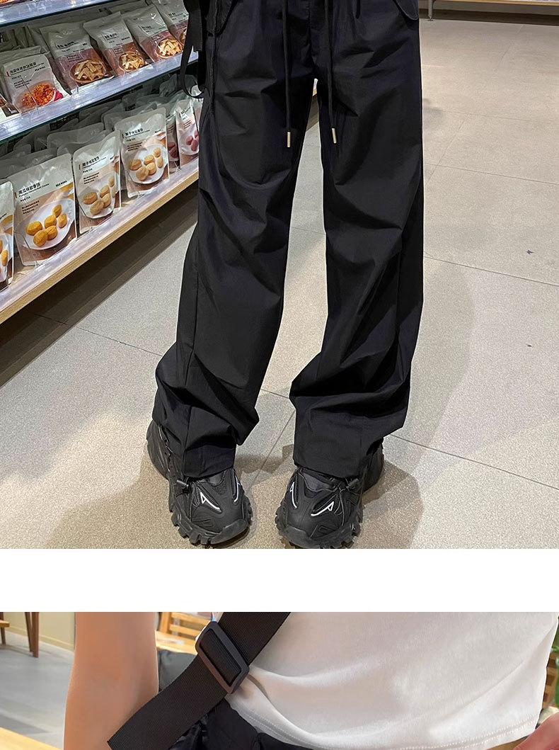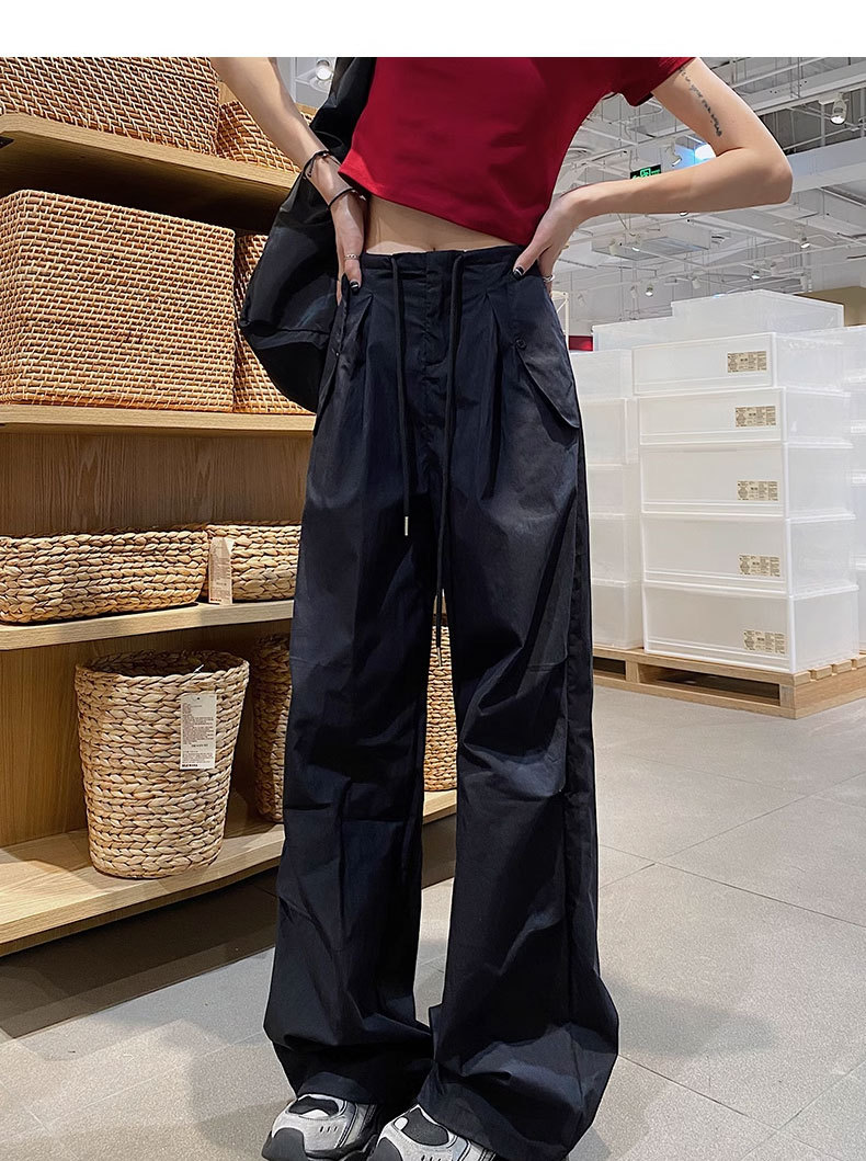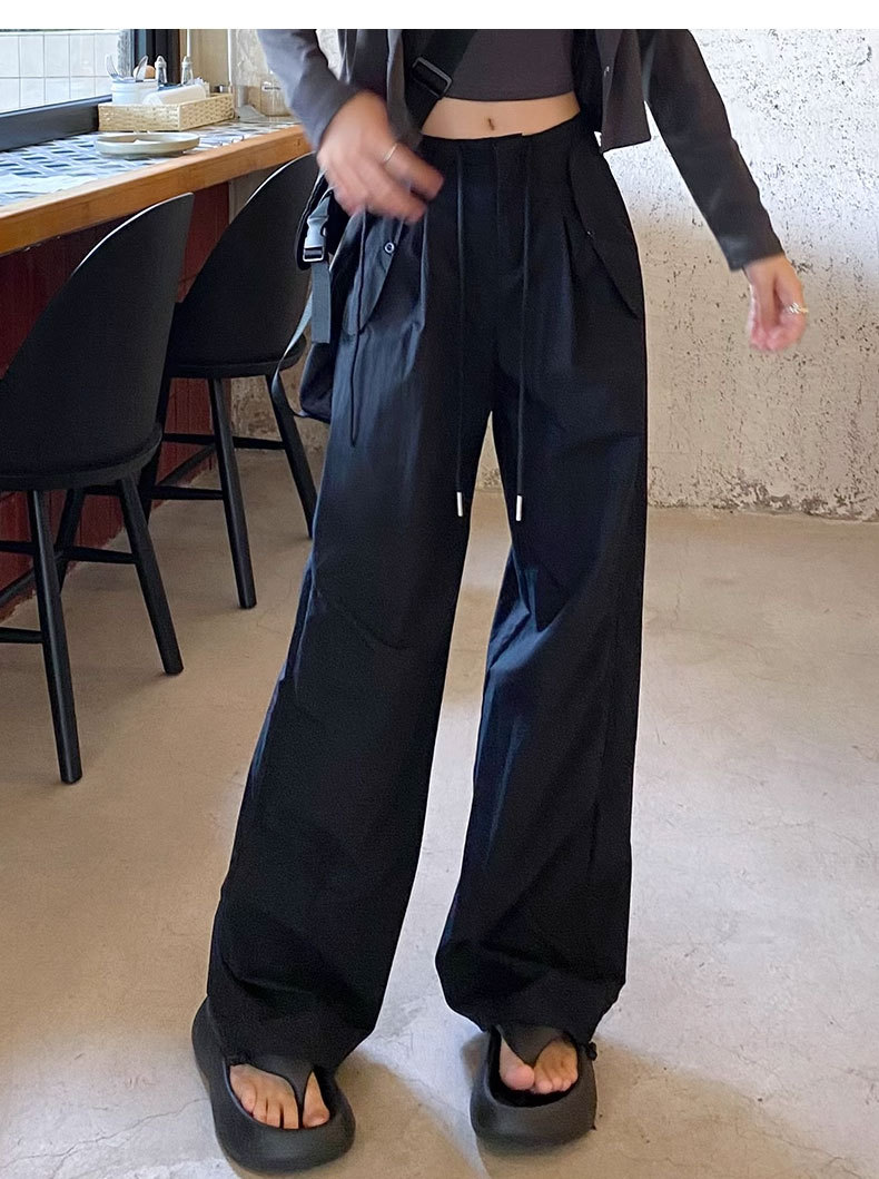 흑인 미국주의 바지 여성의 봄과 가을 2025 새로운 폭발 넓은 다리 바지 높은 허리 슬리밍 사그 스포츠 낙하산 바지스토어 가기